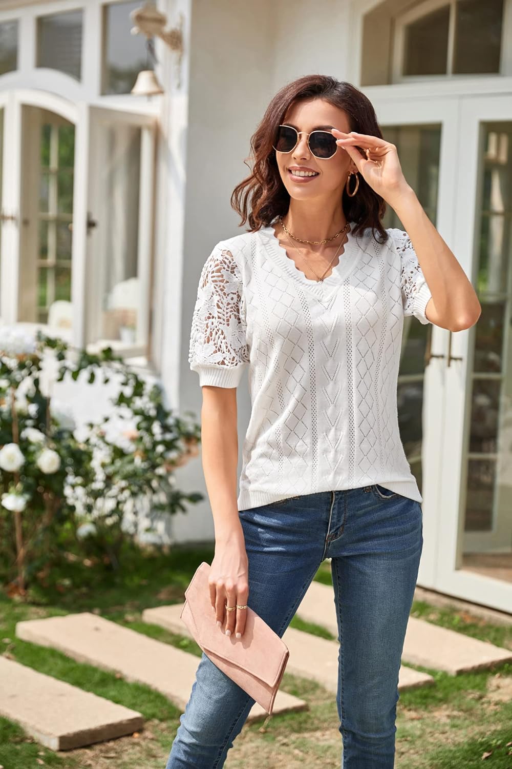 Be the first to review “GRACE KARIN Womens Lightweight Thin Summer Pullover Sweater Cute Puff Short Sleeve Tops Pullover Shirt Knit Blouse(White B)” Cancel reply