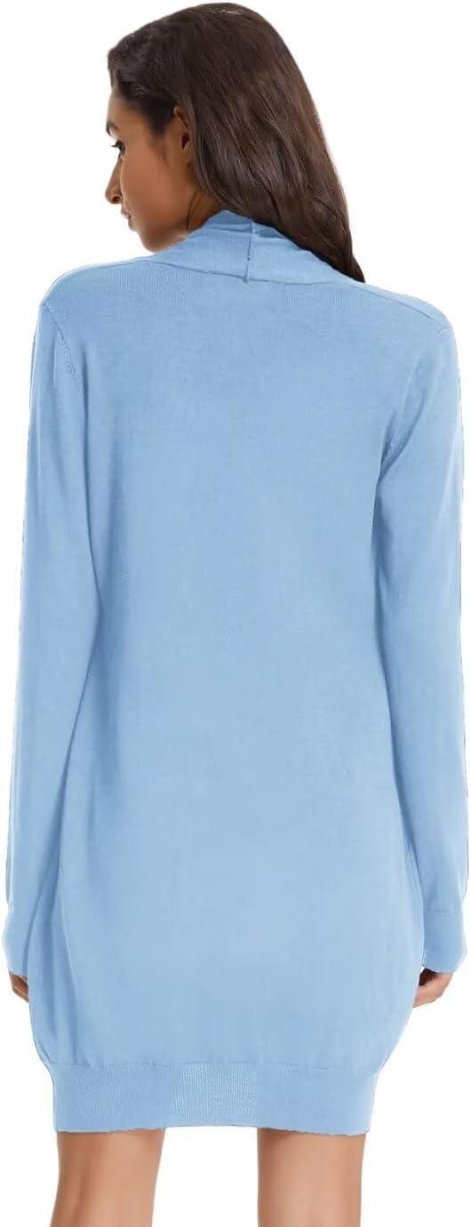 GRACE KARIN Women’s Long Cardigan Sweater Open Front Classic Knitted Lightweight Sweater Coat with Pockets(Light Blue)