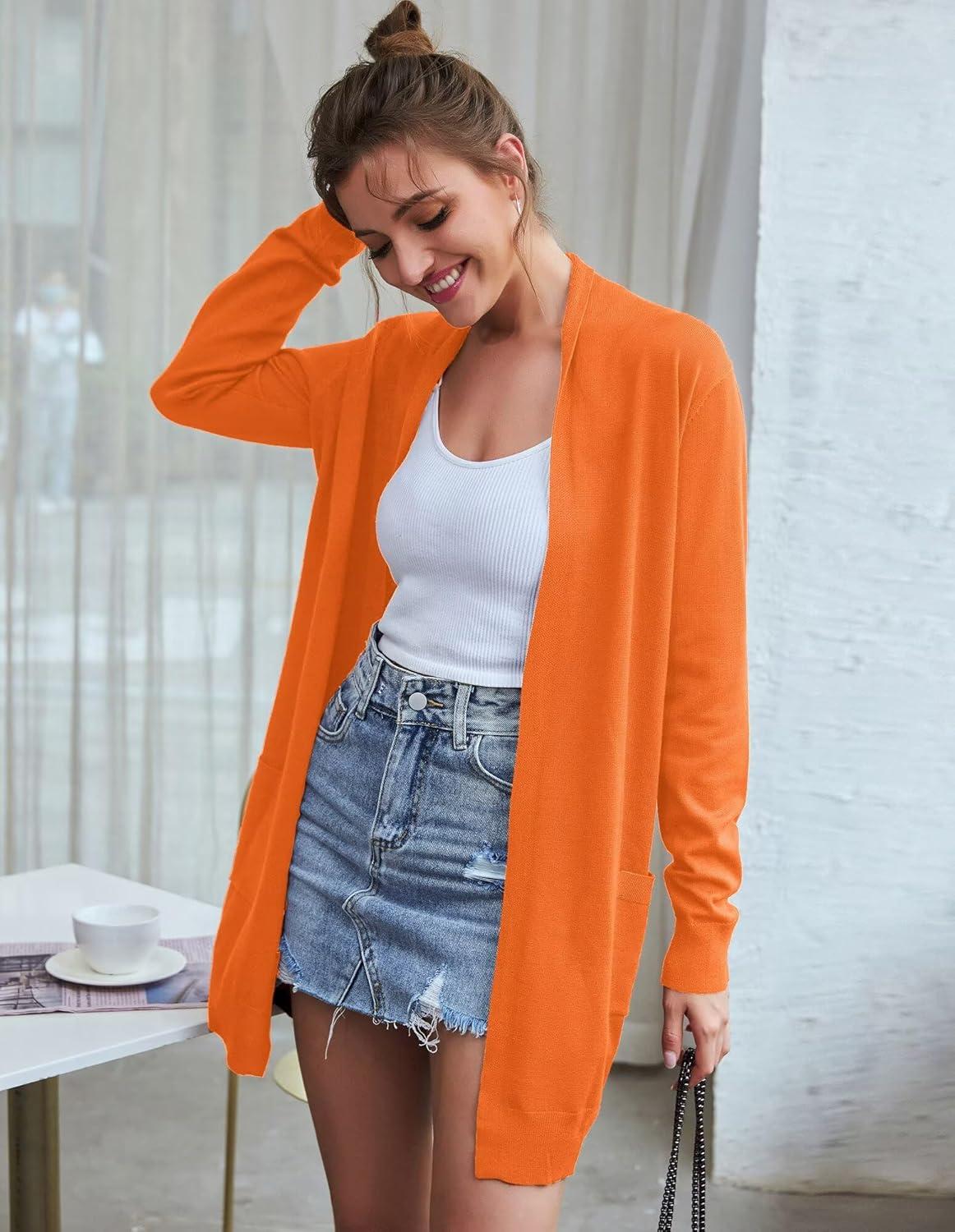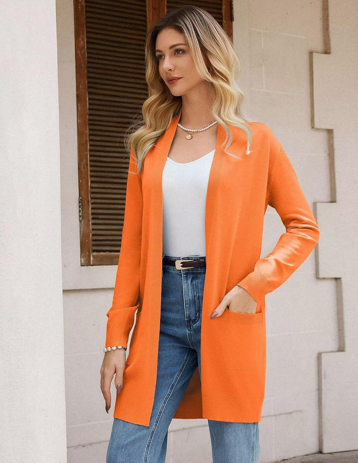 GRACE KARIN Women’s Long Cardigan Sweater Open Front Classic Knitted Lightweight Sweater Coat with Pockets(Orange)