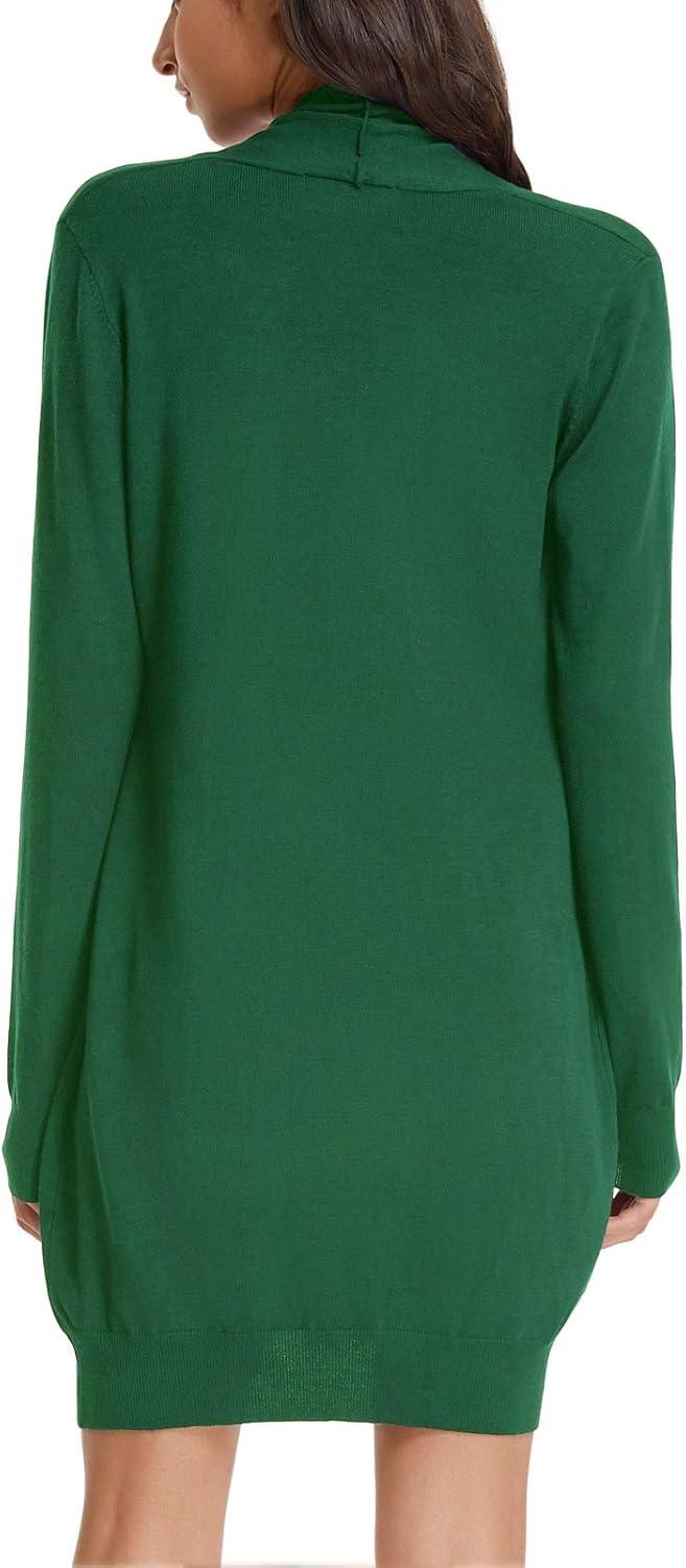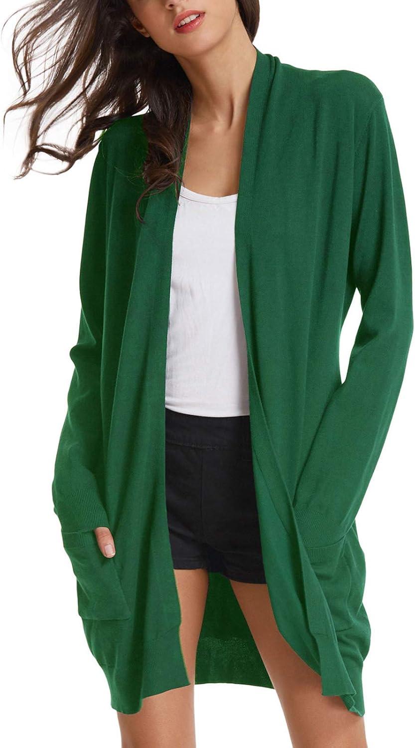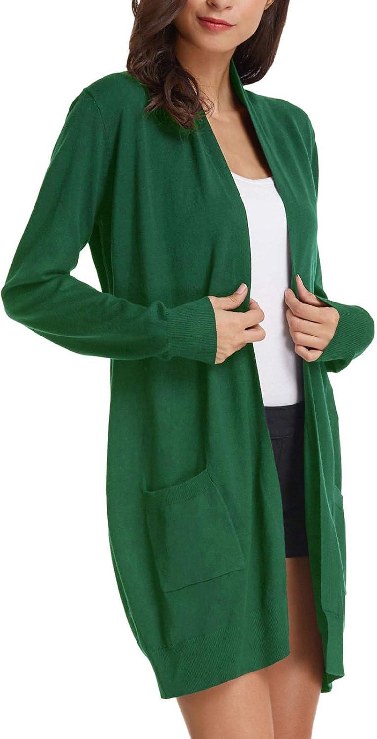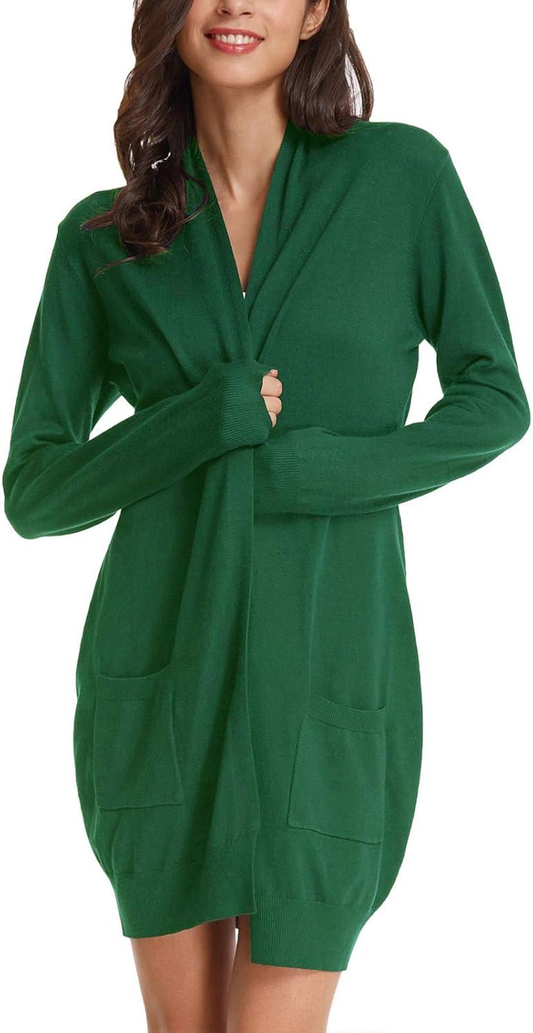 GRACE KARIN Women’s Long Cardigan Sweater Open Front Classic Knitted Lightweight Sweater with Pockets(Army Olive)