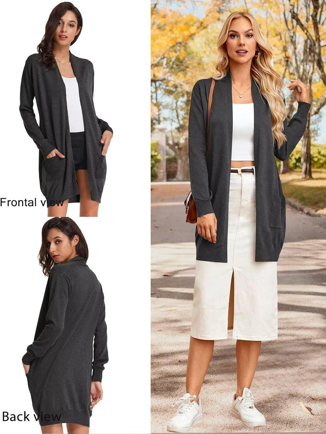 GRACE KARIN Women's Long Cardigan Sweater Open Front Classic Knitted Lightweight Sweater with Pockets(Deep Grey)