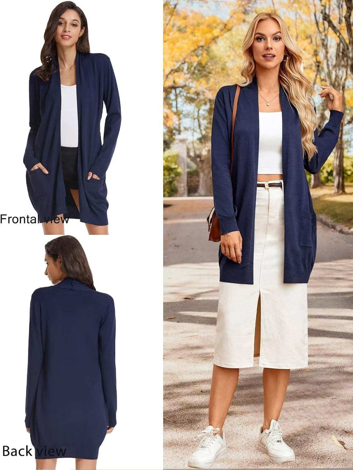 GRACE KARIN Women's Long Cardigan Sweater Open Front Classic Knitted Lightweight Sweater with Pockets(Navy Blue)