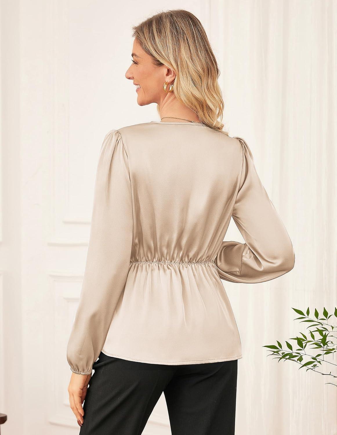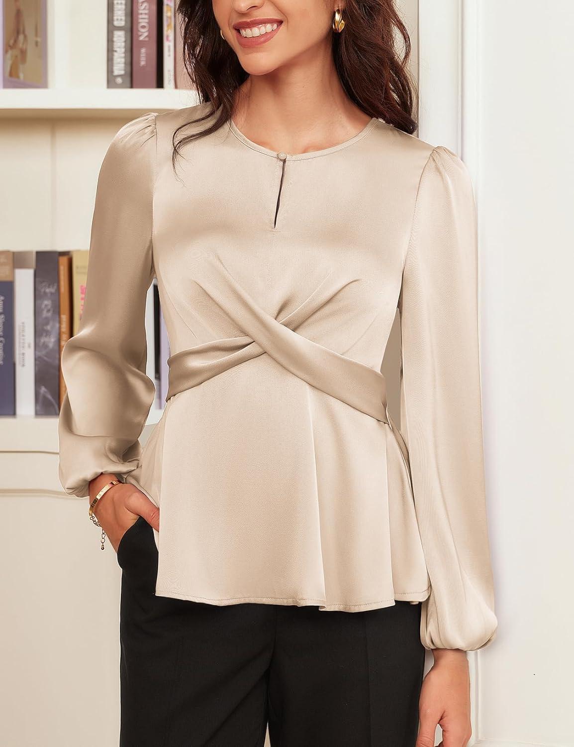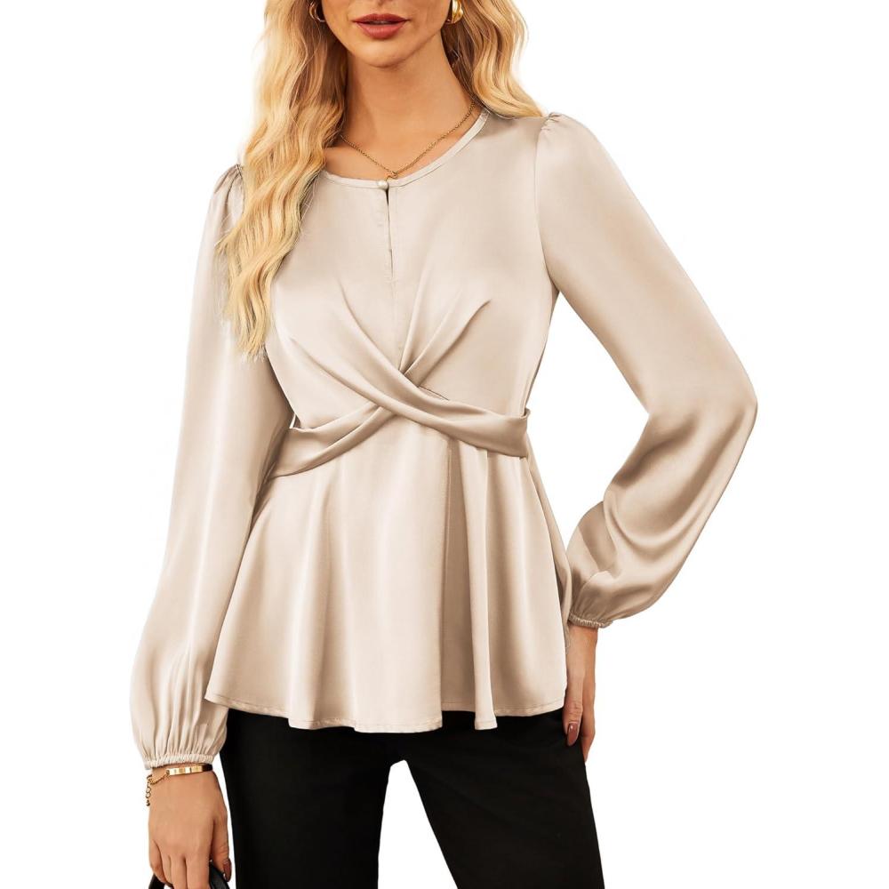 Don’t break the bank! Get the GRACE KARIN Women’s Long Sleeve Blouse Dressy 2025 Satin Silk Crew Neck High Waist Peplum Shirts Work Business Casual Tops(Apricot) you want at a price you can afford during our markdown sale.