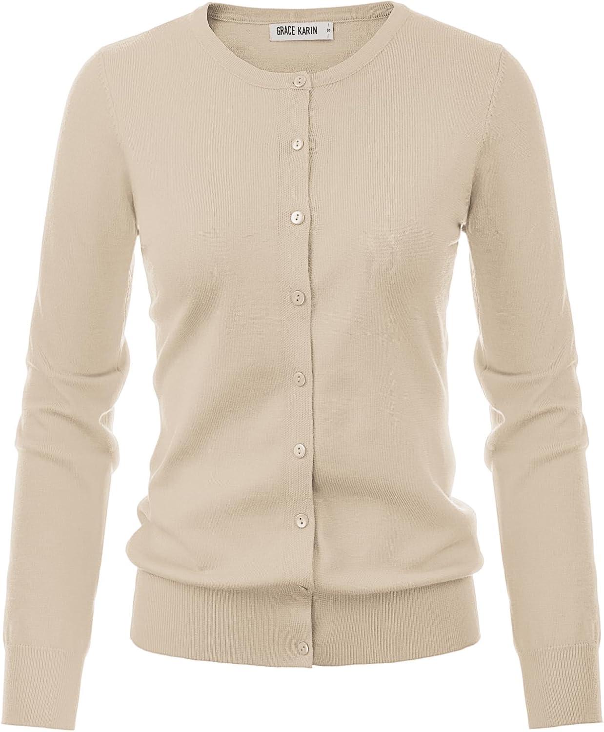 imageGRACE KARIN Womens Long Sleeve Button Down Crew Neck Classic Sweater Knit CardiganBeige