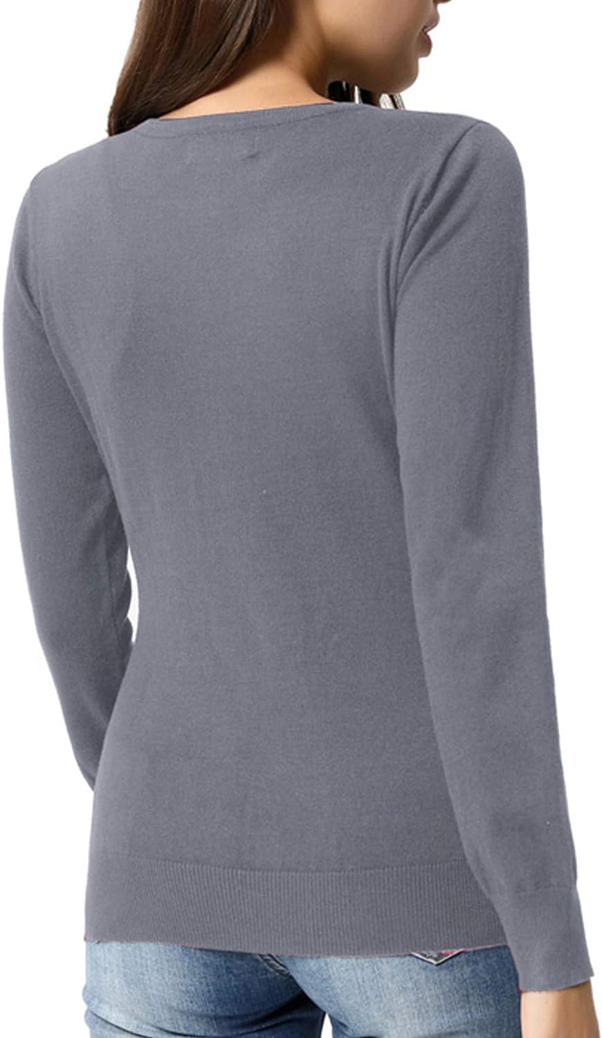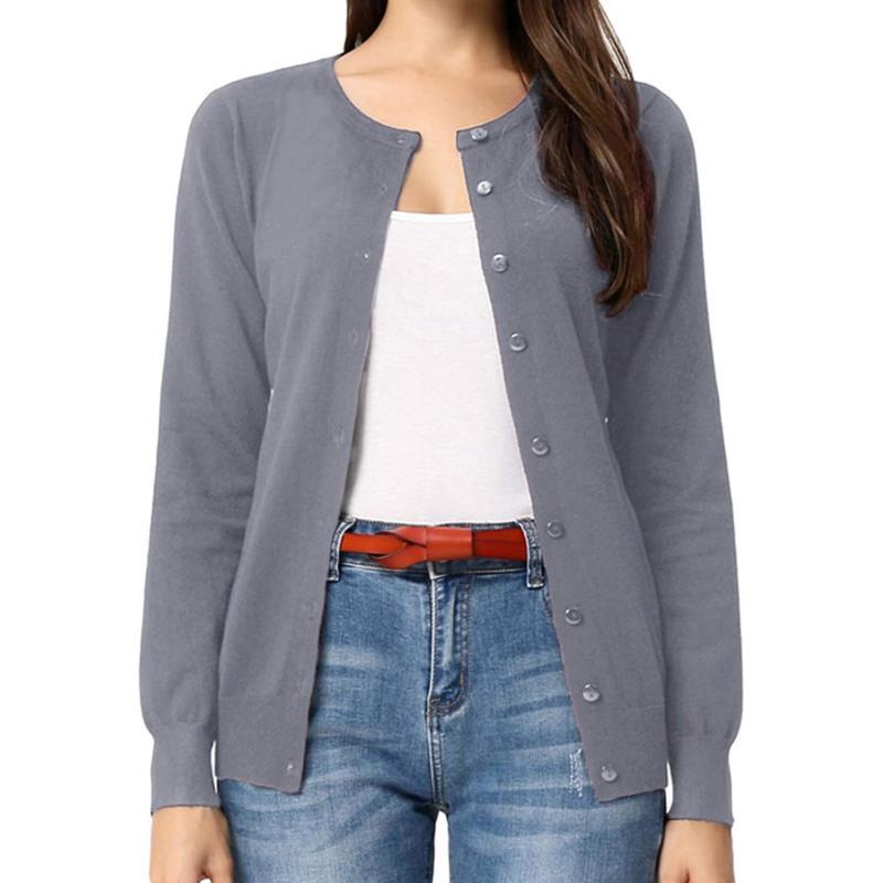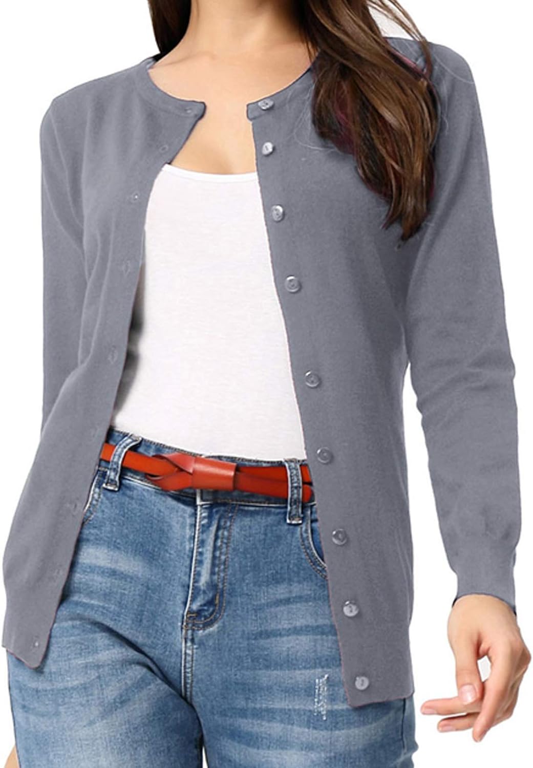 GRACE KARIN Womens Long Sleeve Button Down Crew Neck Classic Sweater Knit CardiganGrey Blue