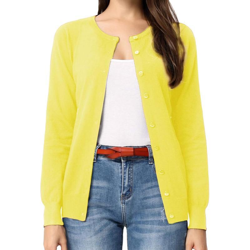GRACE KARIN Womens Long Sleeve Button Down Crew Neck Classic Sweater Knit CardiganLemon Yellow