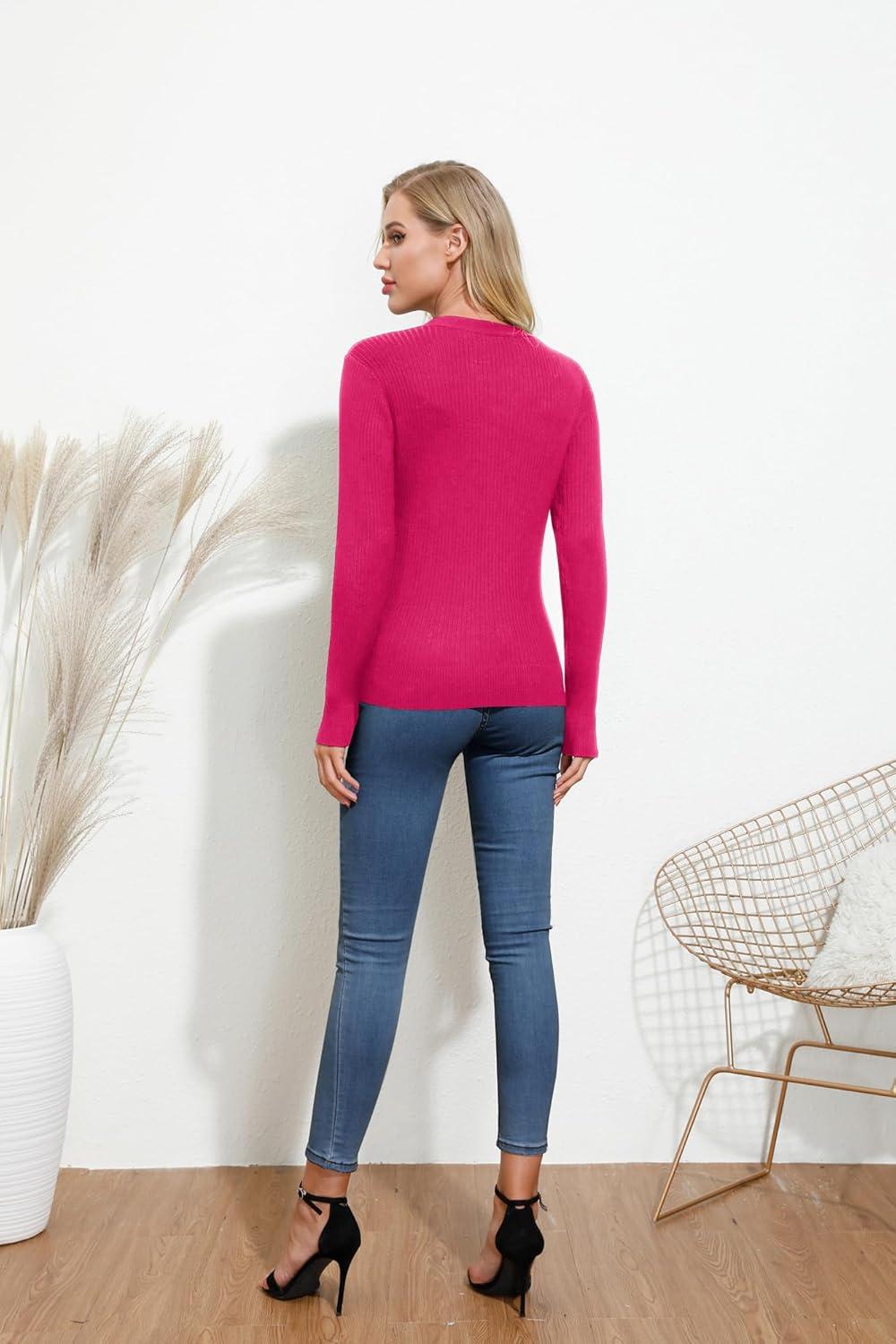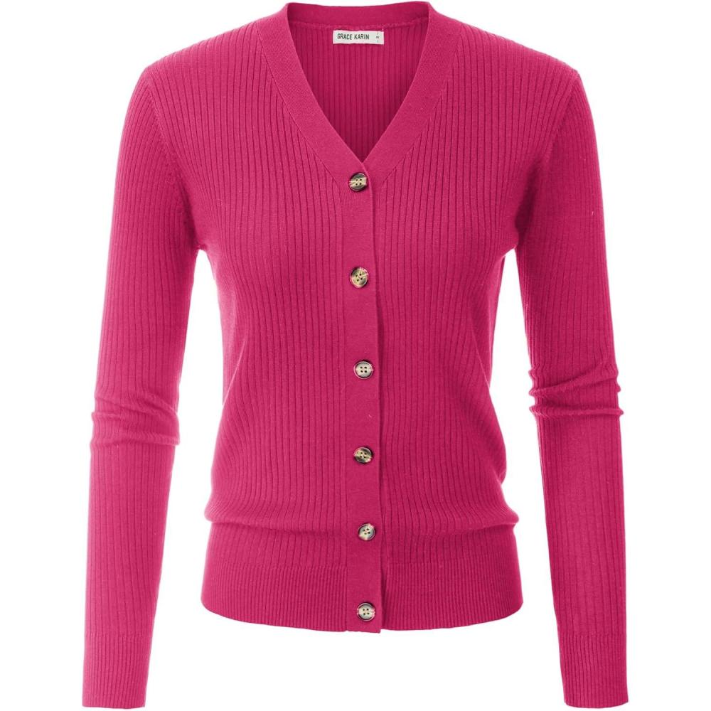 imageGRACE KARIN Womens Long Sleeve Button Down Vee Neck Classic Sweater Knit CardiganHot Pink