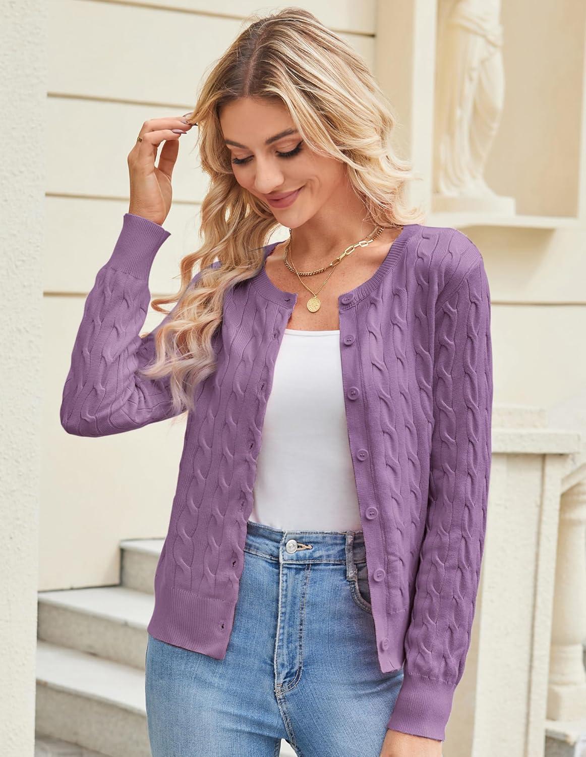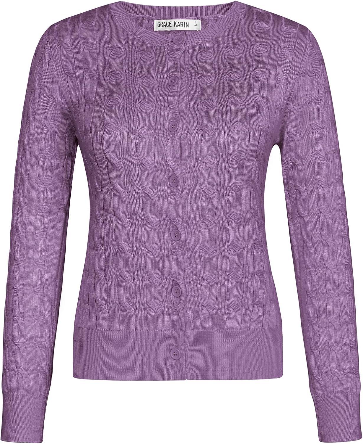 Get more for your money with our exclusive bundle deals on GRACE KARIN Women’s Long Sleeve Button Up Cable Knit Cardigan Lightweight 2025 Crewneck Button Down Sweaters for Women(Purple) and accessories.