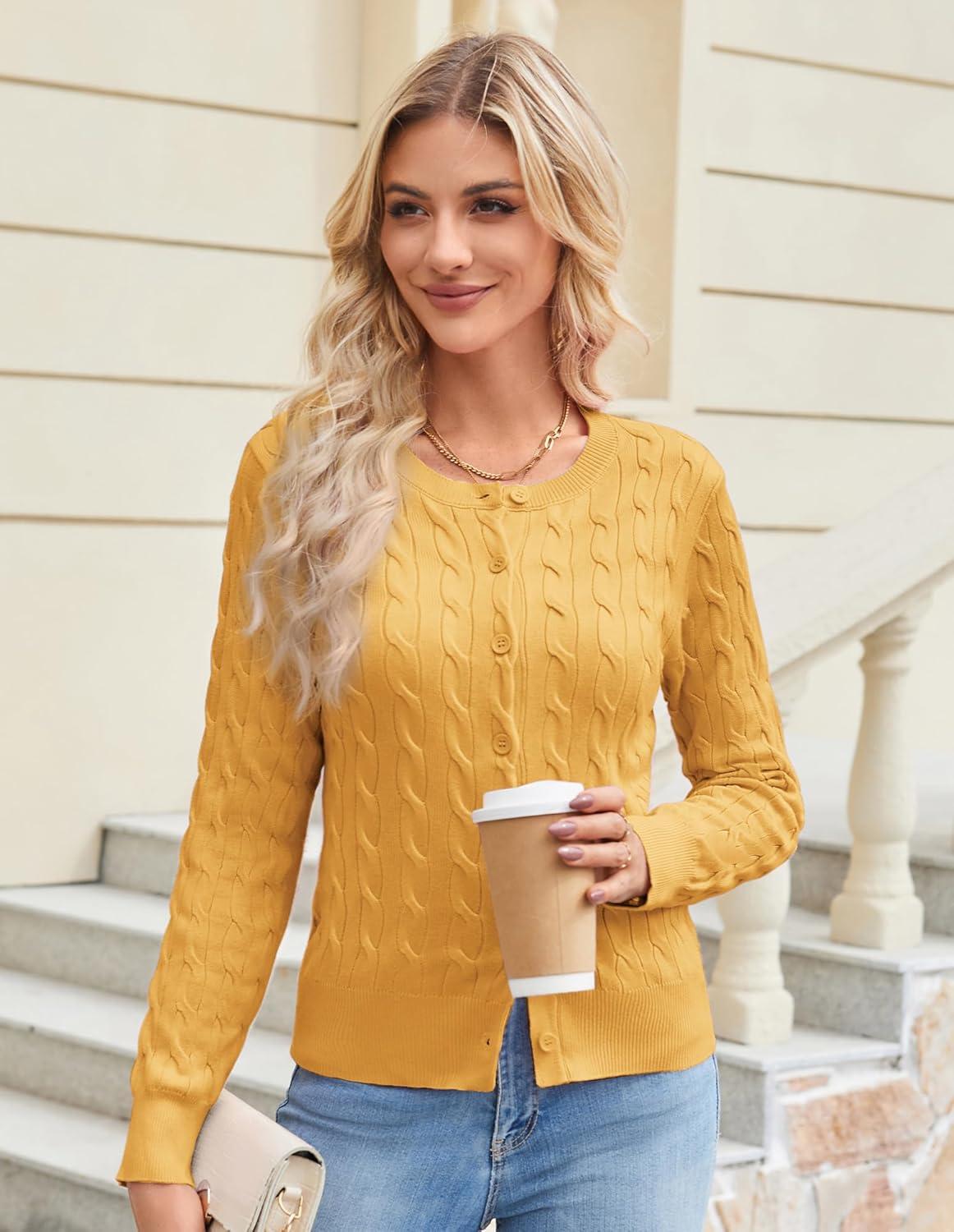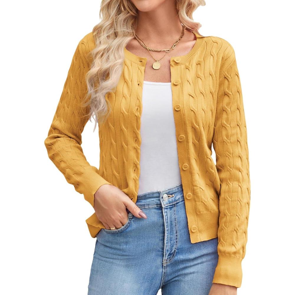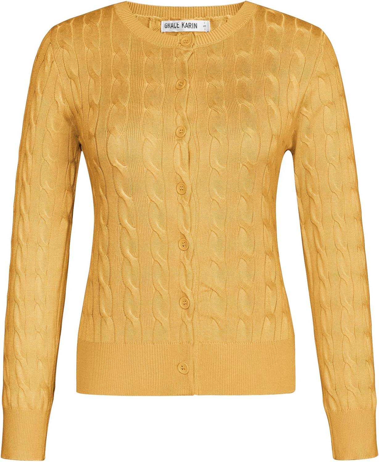 Get up to 60% off on GRACE KARIN Womens Long Sleeve Button Up Cable Knit Cardigan Lightweight 2025 Crewneck Button Down Sweaters for Women(Yellow) styles during our winter sale event.