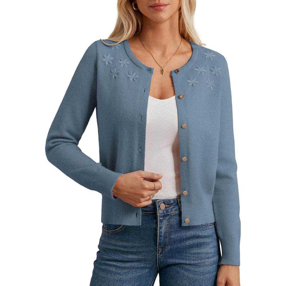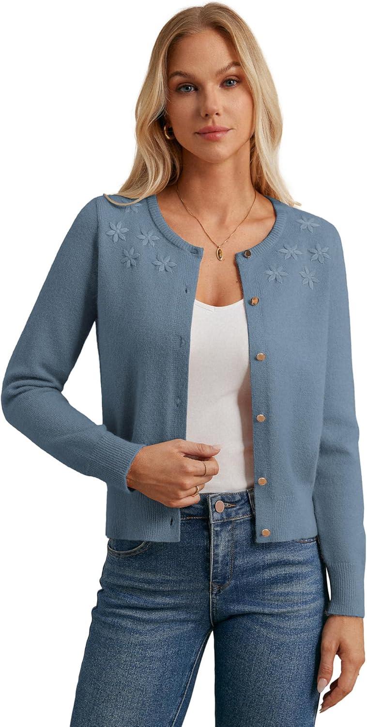 Get up to 60% off on GRACE KARIN Women’s Long Sleeve Knitted Cardigan Sweaters Crew Neck Button Up Fuzzy Flower Sweaters Fall Outfits(Gray Blue) styles during our winter sale event.