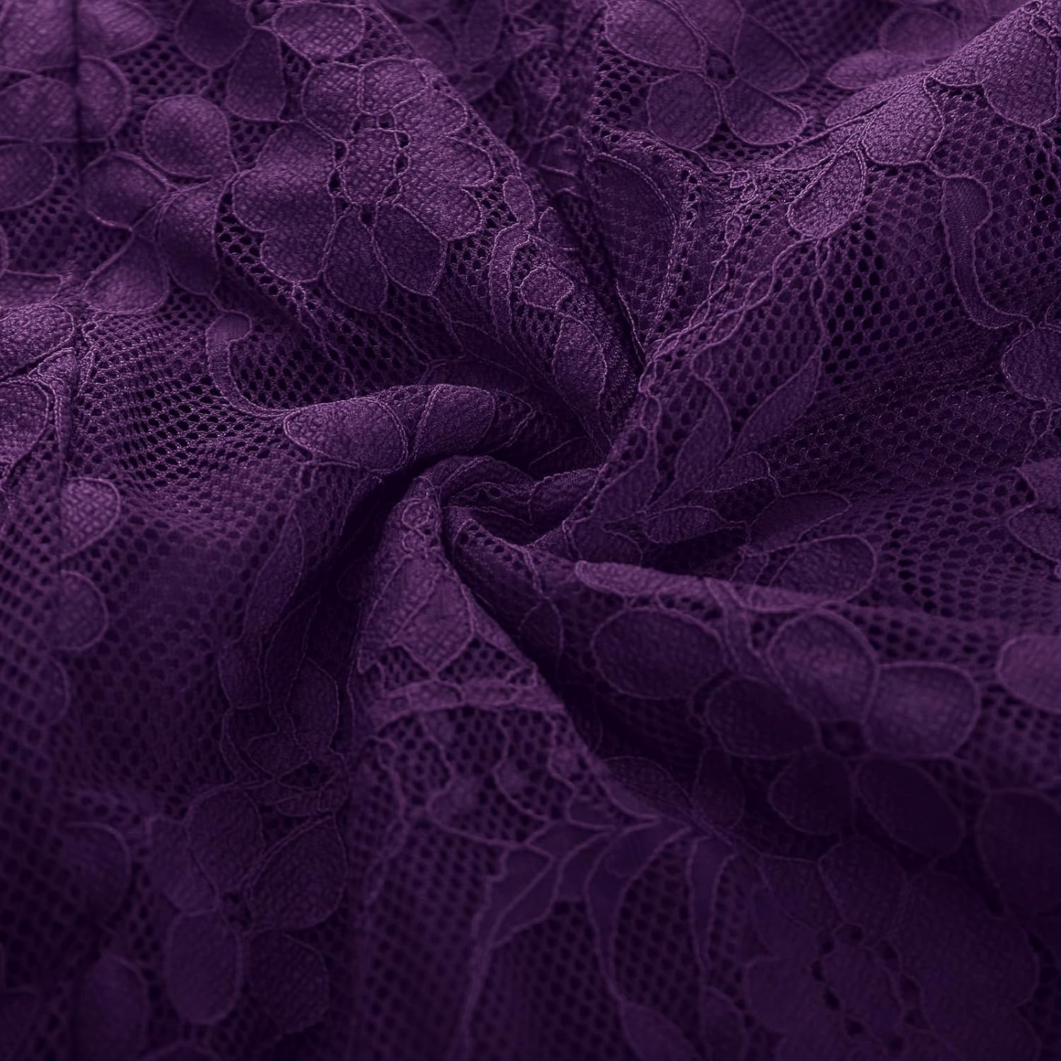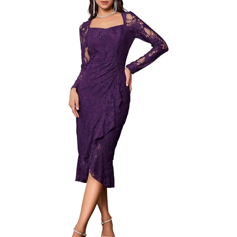 GRACE KARIN Womens Long Sleeve Lace Dresses for Wedding Guest Ruched Bodycon Mermaid Ruffle Slit Cocktail Midi DressPurple