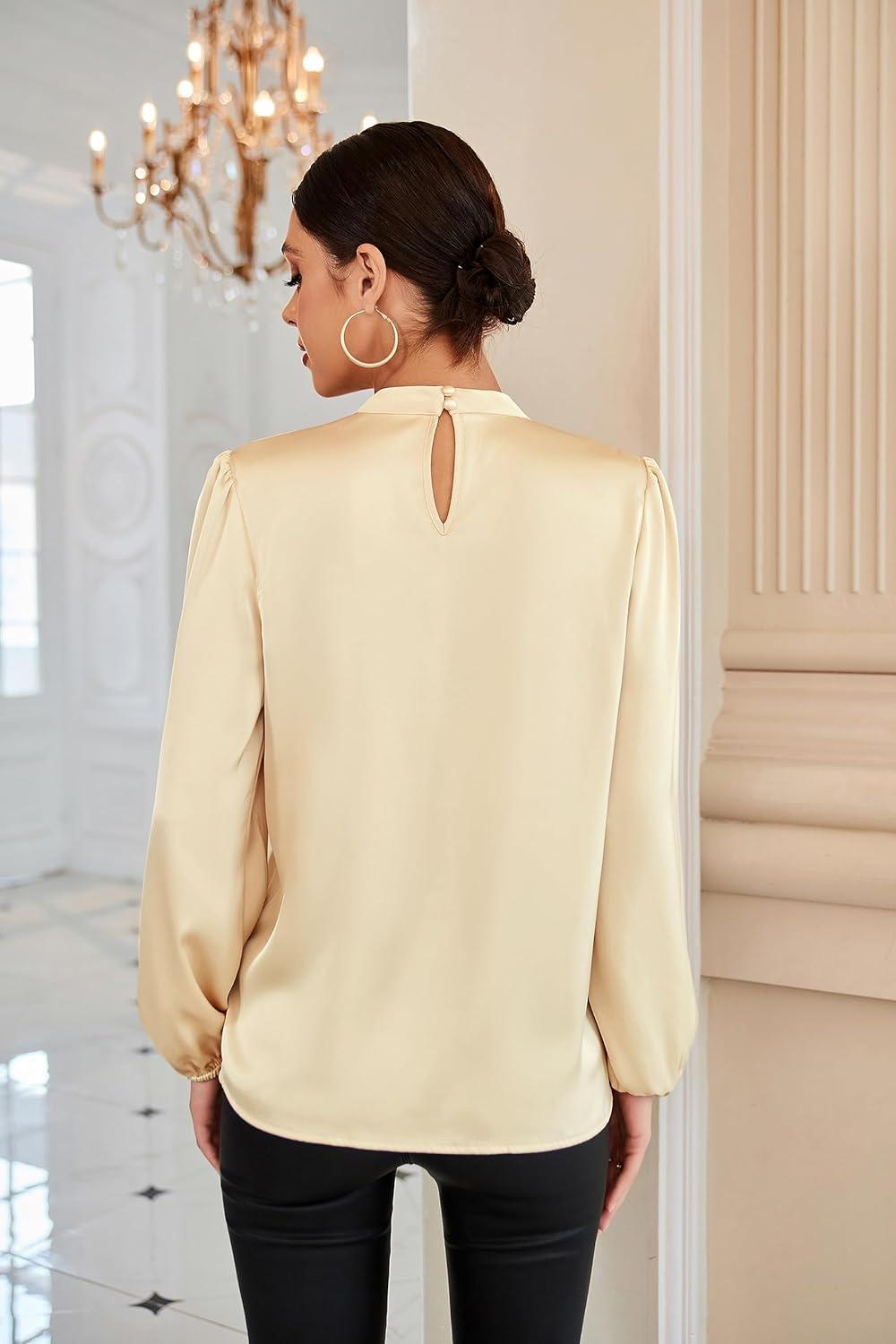 GRACE KARIN Women's Long Sleeve Satin Blouse,Mock Neck Work Silk Shirts,Dressy Tops for Business Casual Office(Apricot)