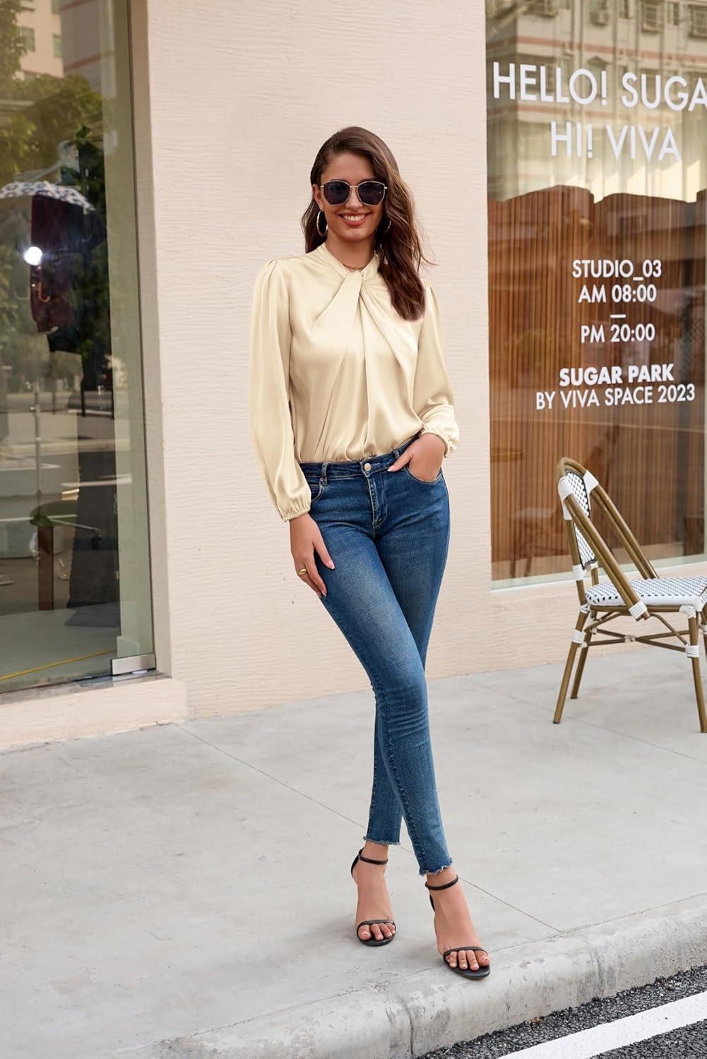 Score big on GRACE KARIN Women’s Long Sleeve Satin Blouse,Mock Neck Work Silk Shirts,Dressy Tops for Business Casual Office(Apricot) and accessories during our BOGO sale. Buy one, get one 50% off!