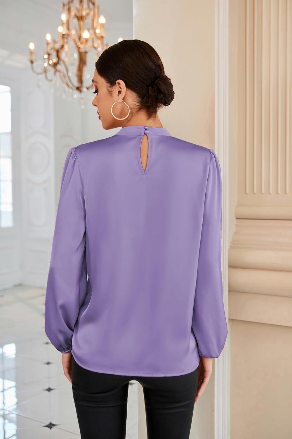 GRACE KARIN Women's Long Sleeve Satin Blouse,Mock Neck Work Silk Shirts,Dressy Tops for Business Casual Office(Light Purple)