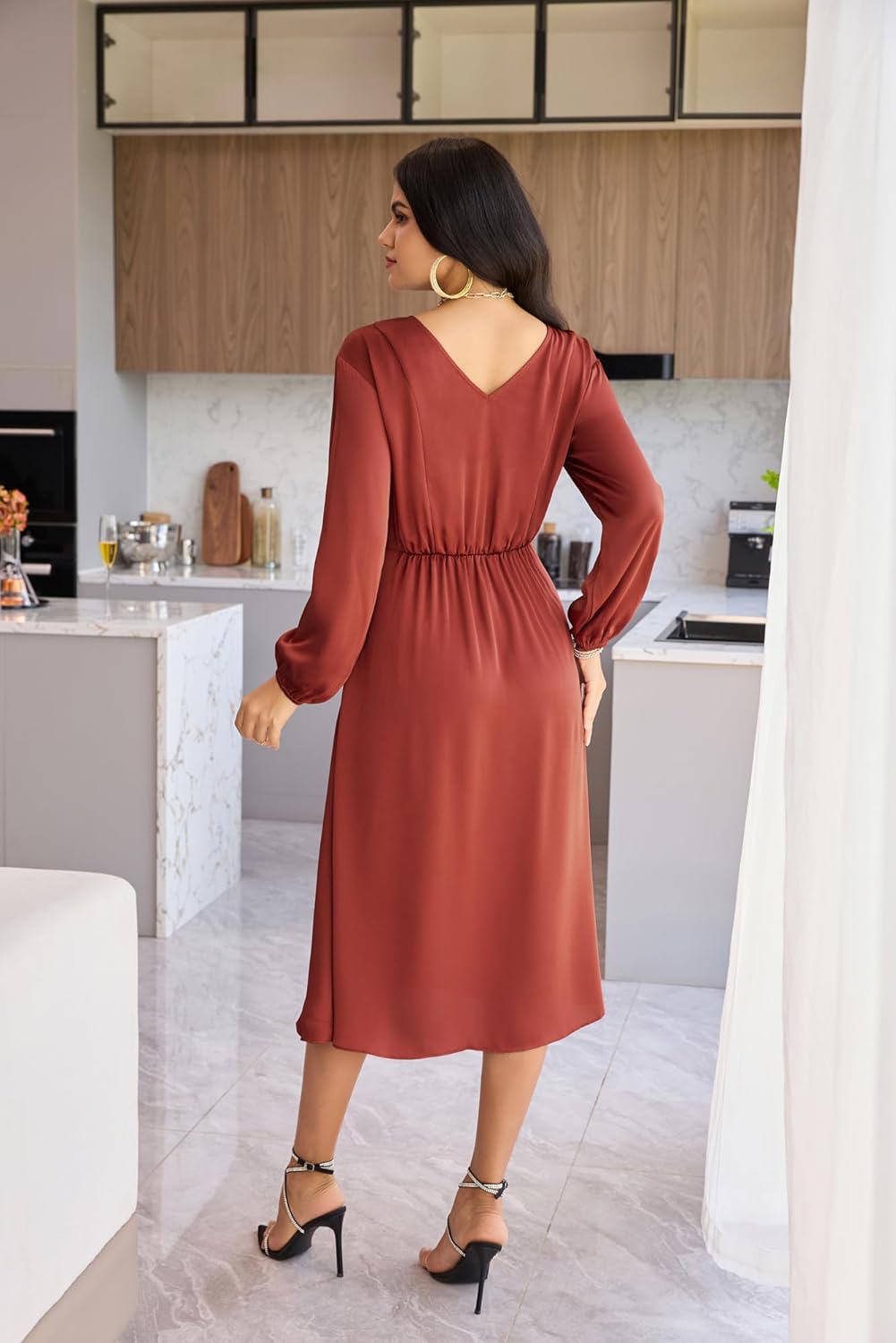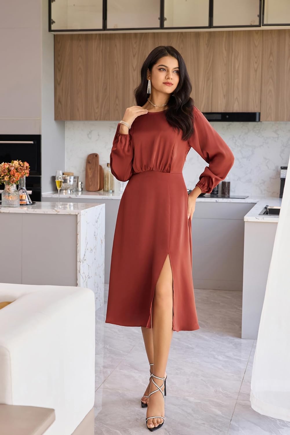Save big on GRACE KARIN Women’s Long Sleeve Satin Wedding Guest Dress with Slit Elegant Boat Neck High Waist A-Line Midi Dress(Burgundy) and accessories during our BOGO sale. Buy one, get one 50% off!