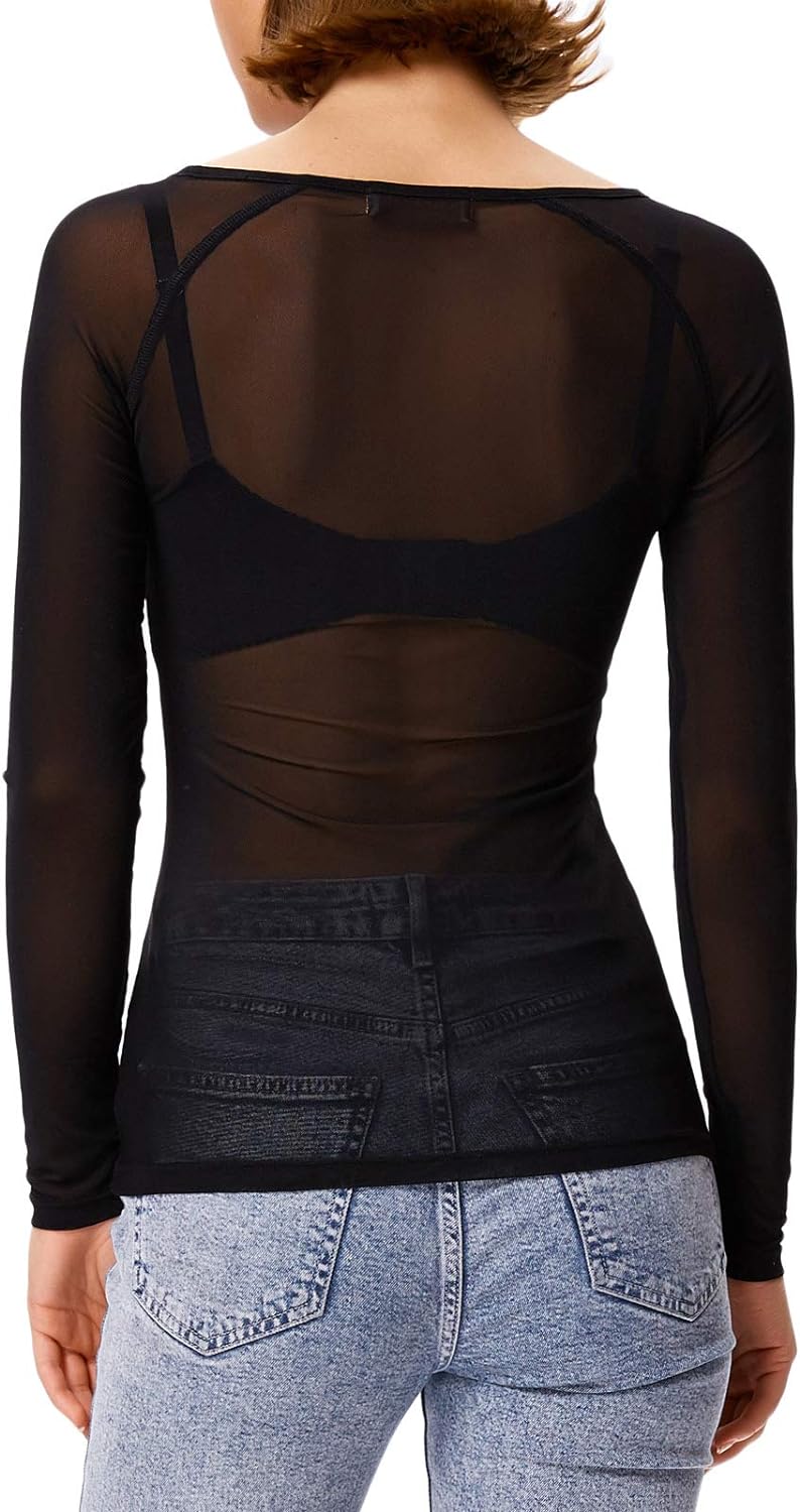 GRACE KARIN Women's Long Sleeve See Through Mesh Sheer Top Blouse Shirt(Black)