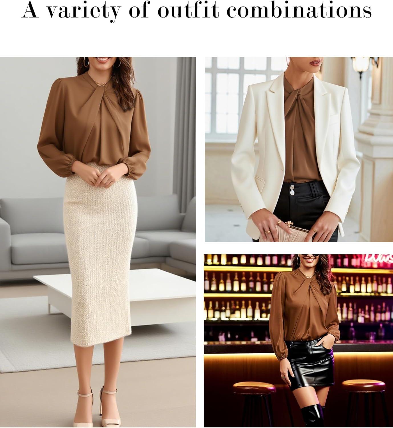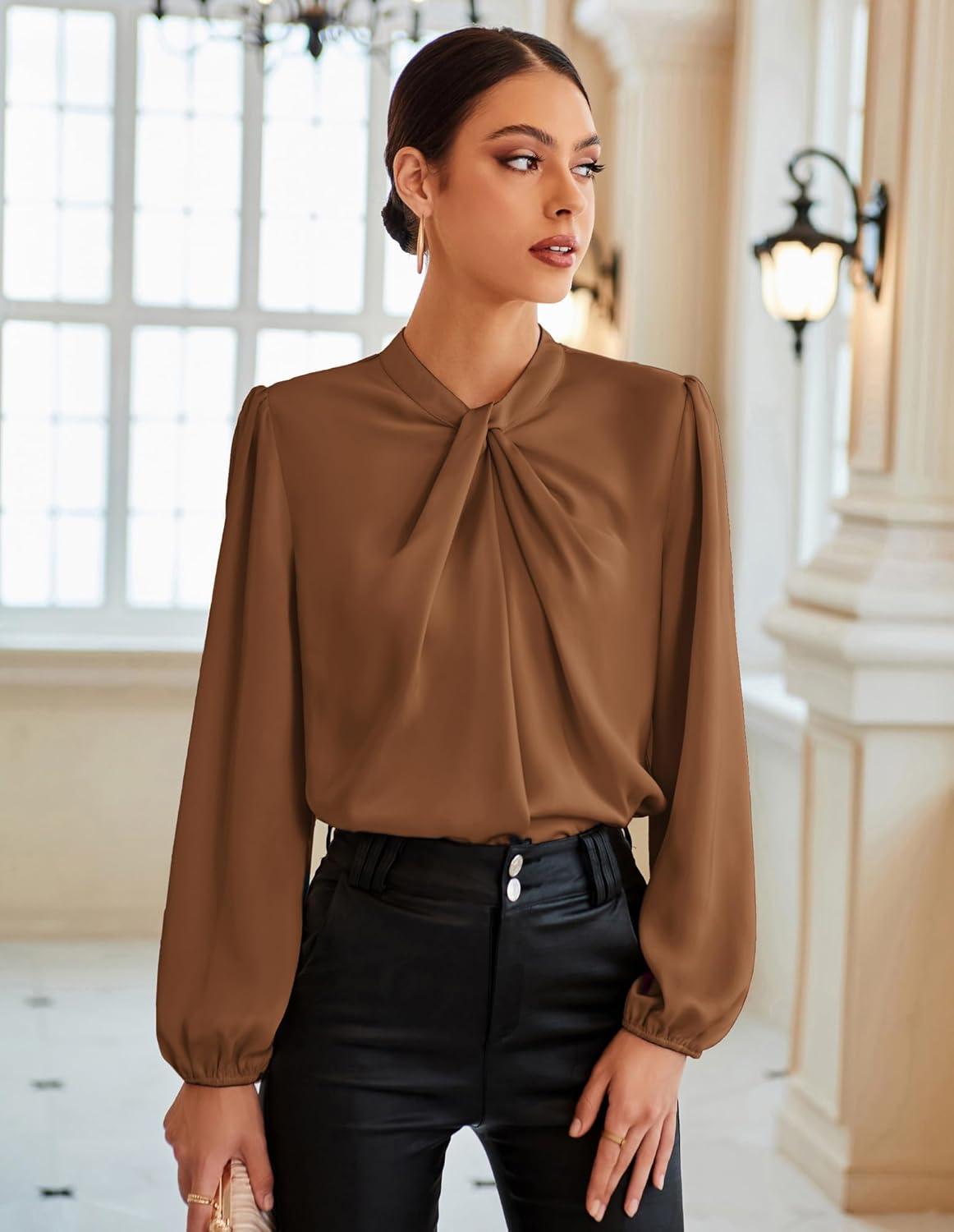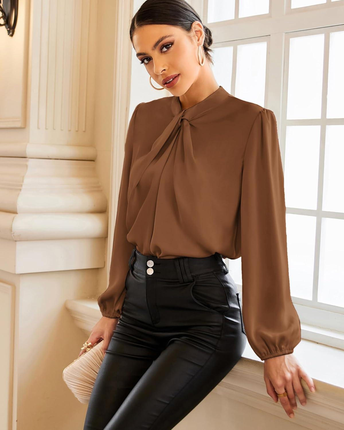 Get your hands on our newest GRACE KARIN Women’s Long Sleeve Shirts Mock Neck Casual Satin Blouse Tops for Business Office Work(Dark Brown) and enjoy a limited-time discount offer.
