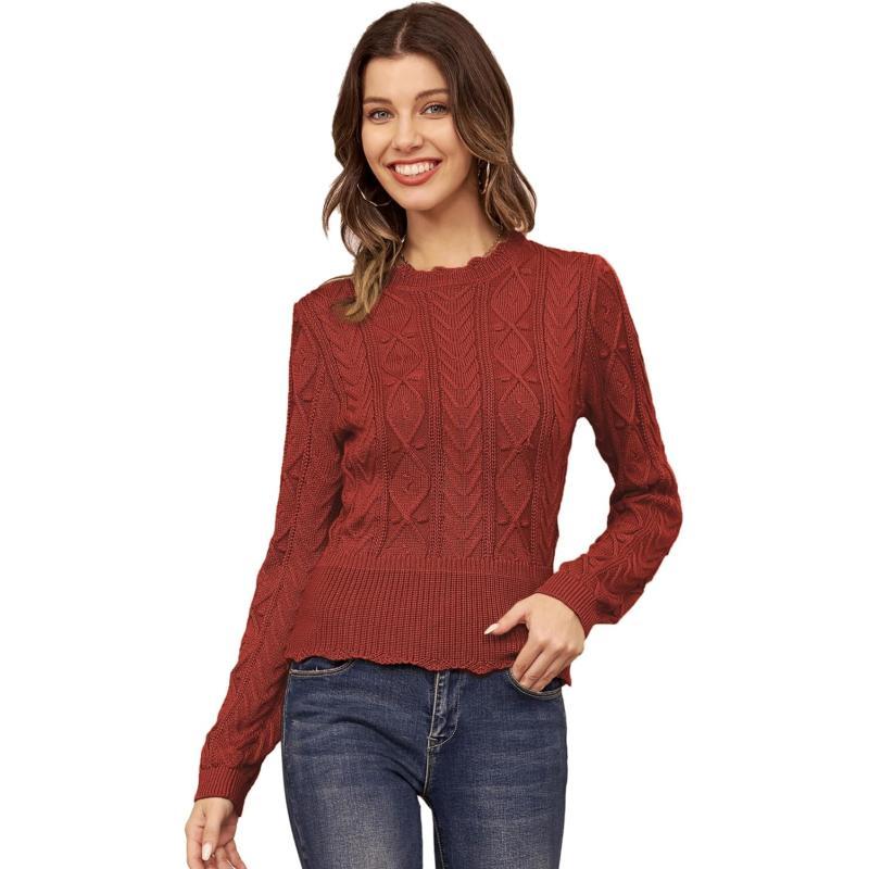 GRACE KARIN Womens Long Sleeve Sweater Cable Crew Neck Chunky Knitwear(Rust Red)