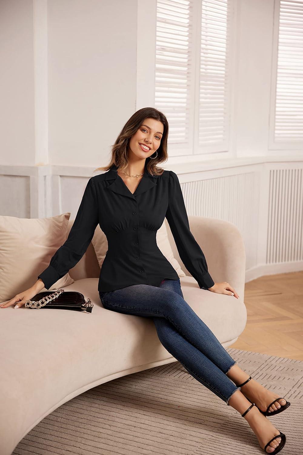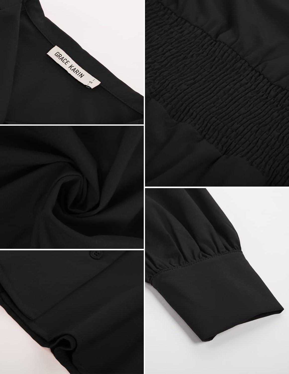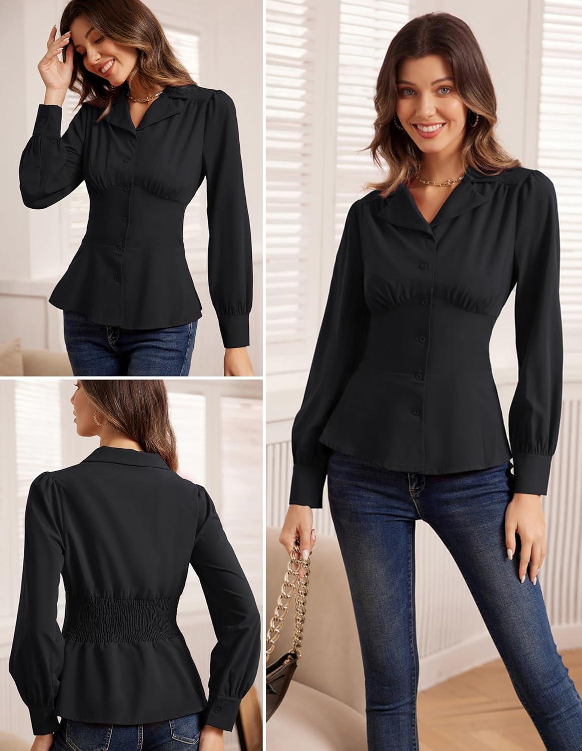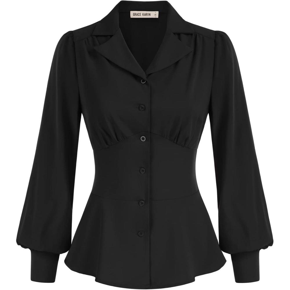 GRACE KARIN Womens Long Sleeve Tops Business Casual, Dressy Button Down Peplum Blouses, Fall Collared Work Elegant Shirt(Black)