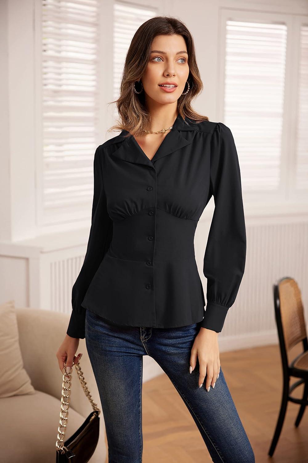 imageGRACE KARIN Womens Long Sleeve Tops Business Casual Dressy Button Down Peplum Blouses Fall Collared Work Elegant ShirtBlack