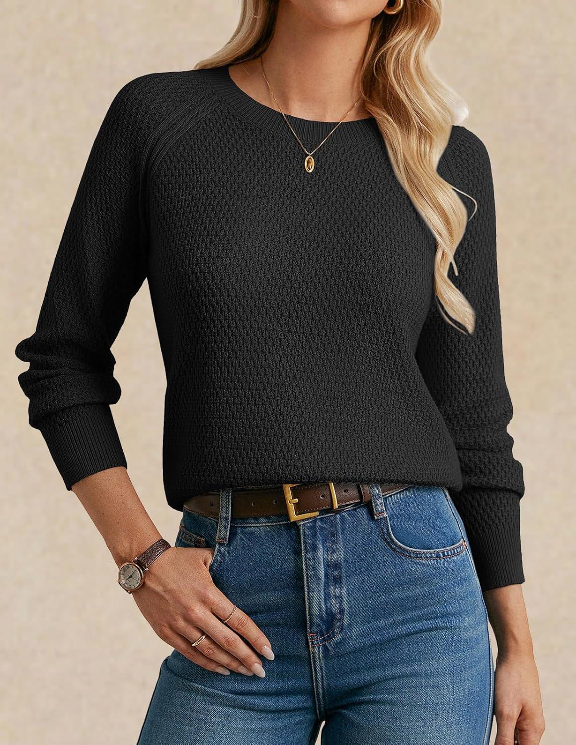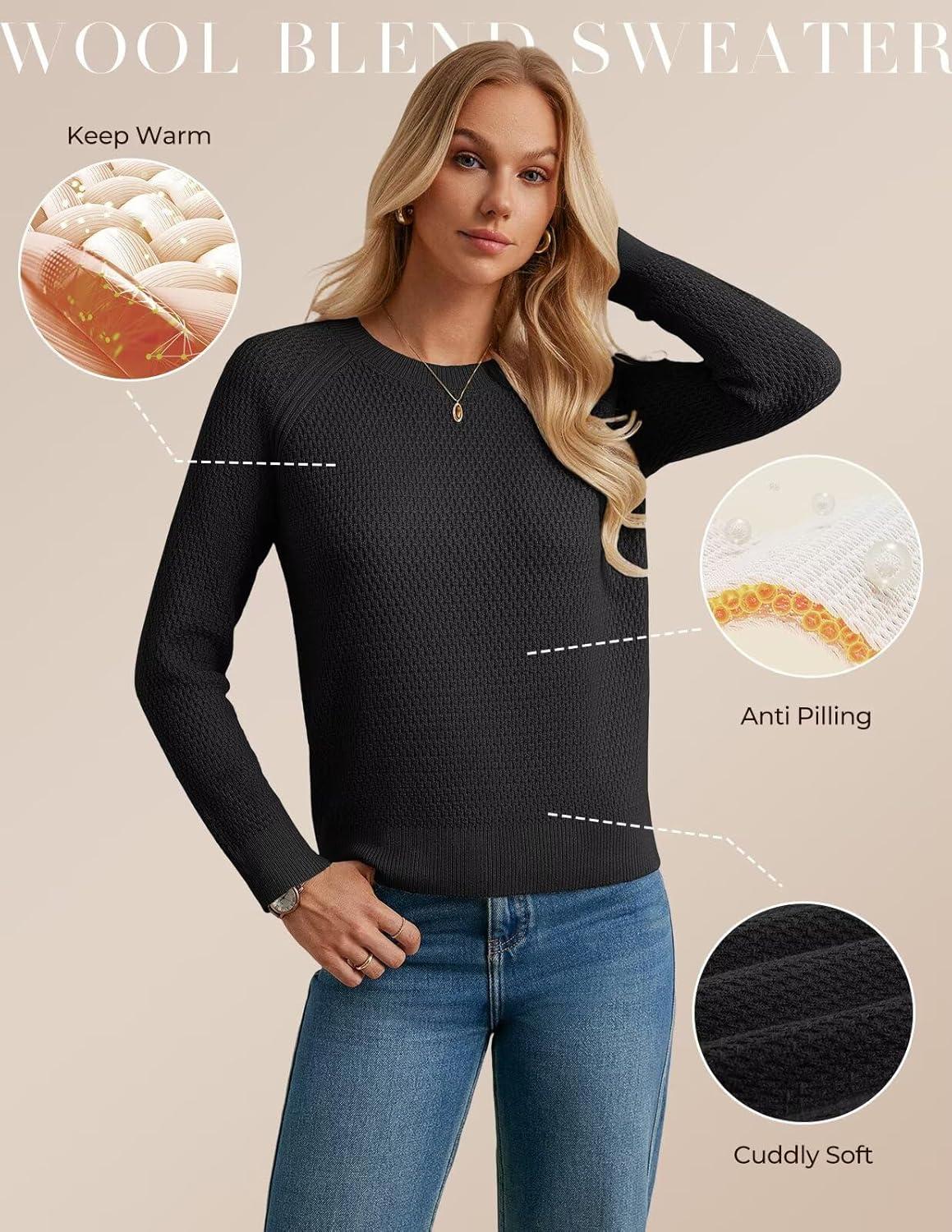 GRACE KARIN Women's Merino Wool Blend Sweater Fall Fashion 2025 Long Sleeve Crewneck Pullover Top(Black)
