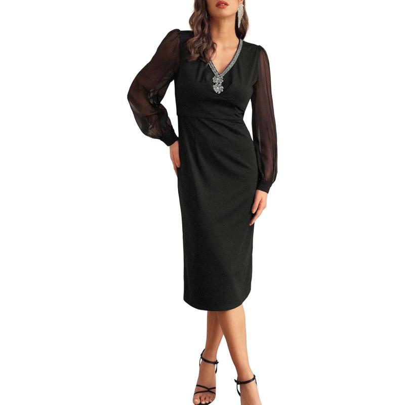 Be the first to review “GRACE KARIN Women’s Mesh Long Sleeve Midi Bodycon Dress V Neck Cocktail Party Dresses(Black)”
