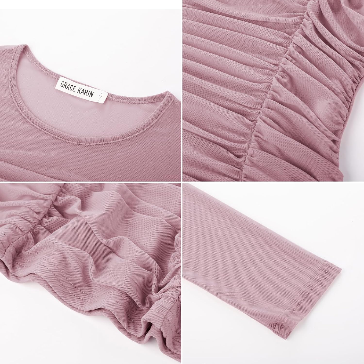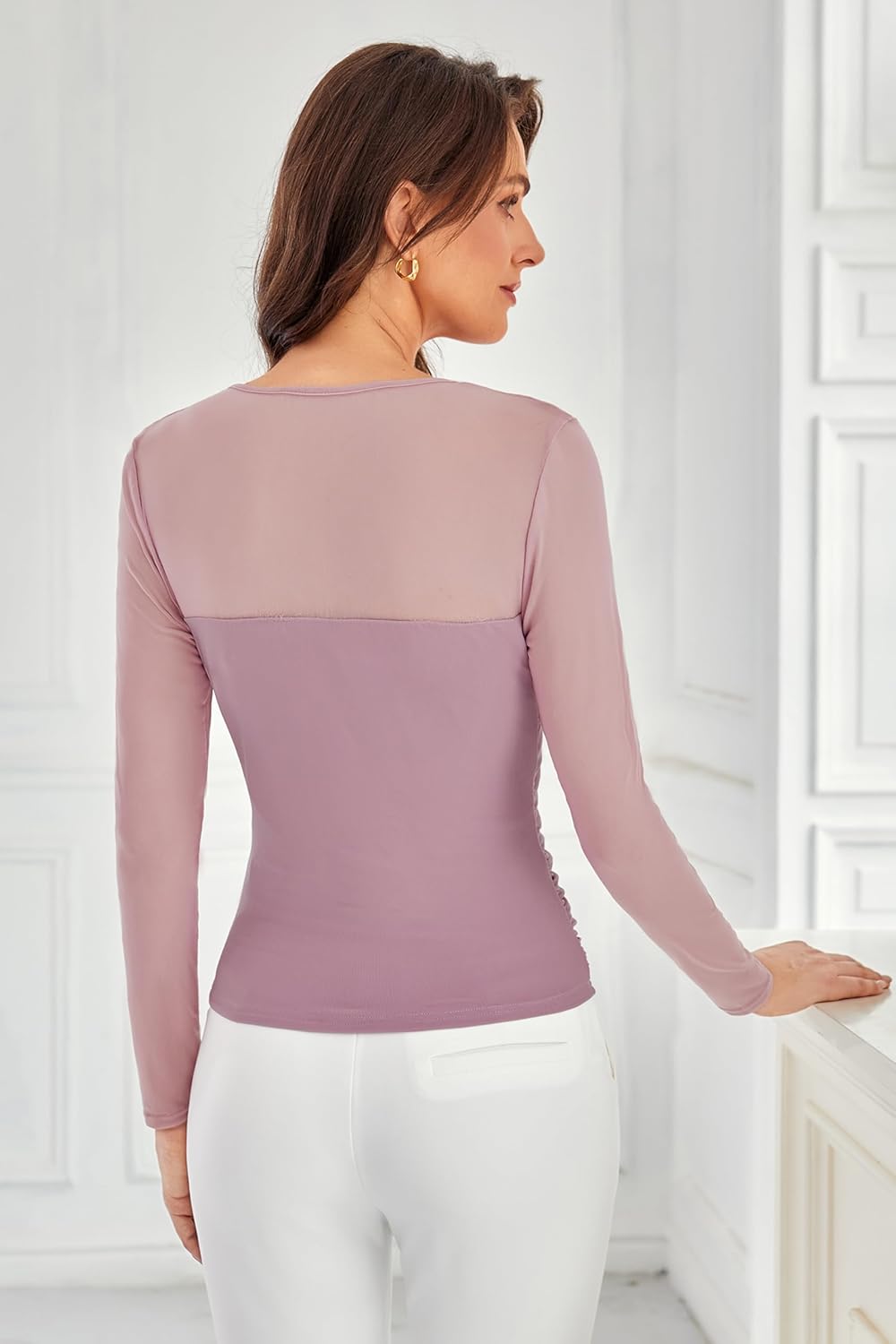 Don’t miss out on our limited-time offer: get a free {accessory} with your purchase of GRACE KARIN Women’s Mesh Top Crew Neck Long Sleeve Shirts Sheer Ruched Trendy Going Out Tops Blouses(Lilac).