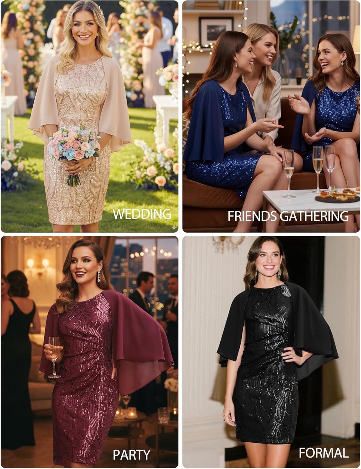GRACE KARIN Women’s Mother of Bride Dresses for Wedding Guest,2025 Sequin Formal Dresses,Cocktail Cape Sleeve Midi Dress(Black)