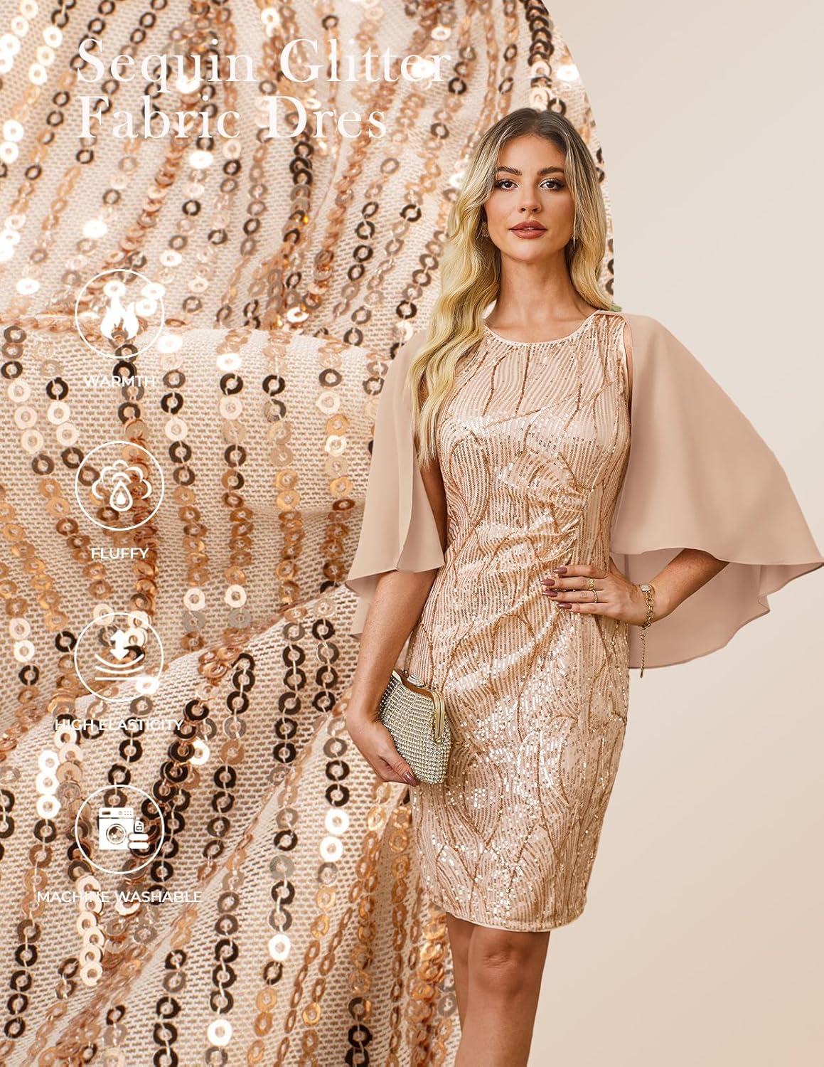 GRACE KARIN Women's Mother of Bride Dresses for Wedding Guest,2025 Sequin Formal Dresses,Cocktail Cape Sleeve Midi Dress(Champagne Gold)