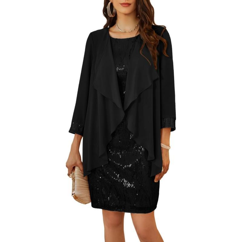GRACE KARIN Women’s Mother of The Bride Sequins Glitter Mini Jacket Dress(Black)