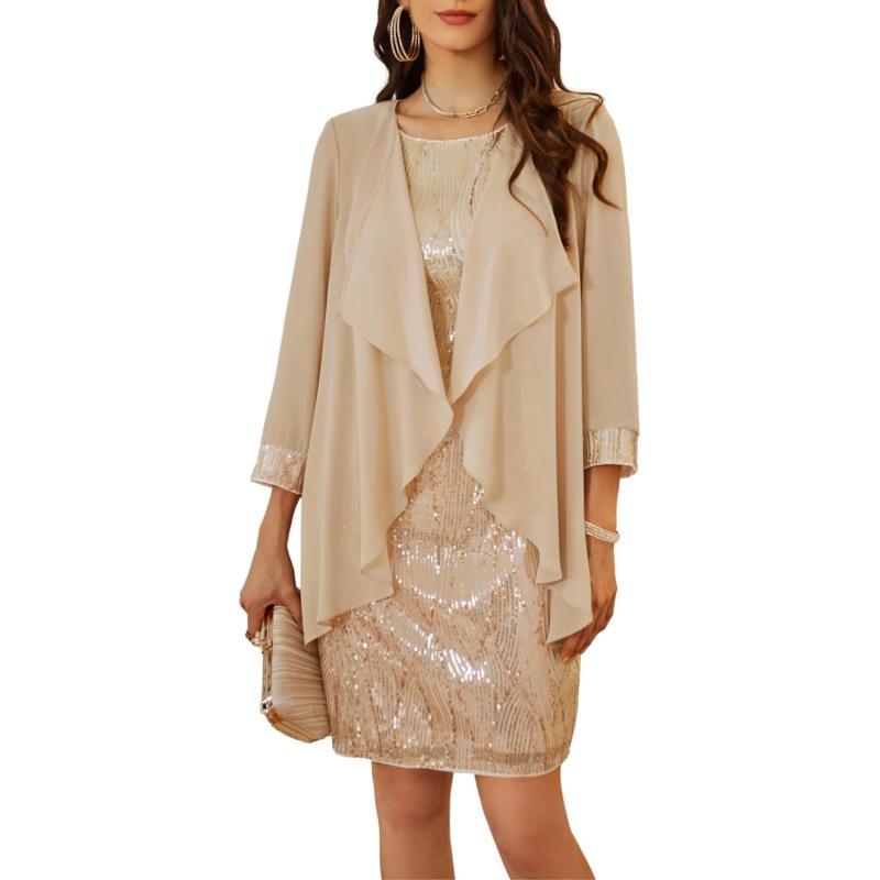 GRACE KARIN Womens Mother of The Bride Sequins Glitter Mini Jacket DressGold