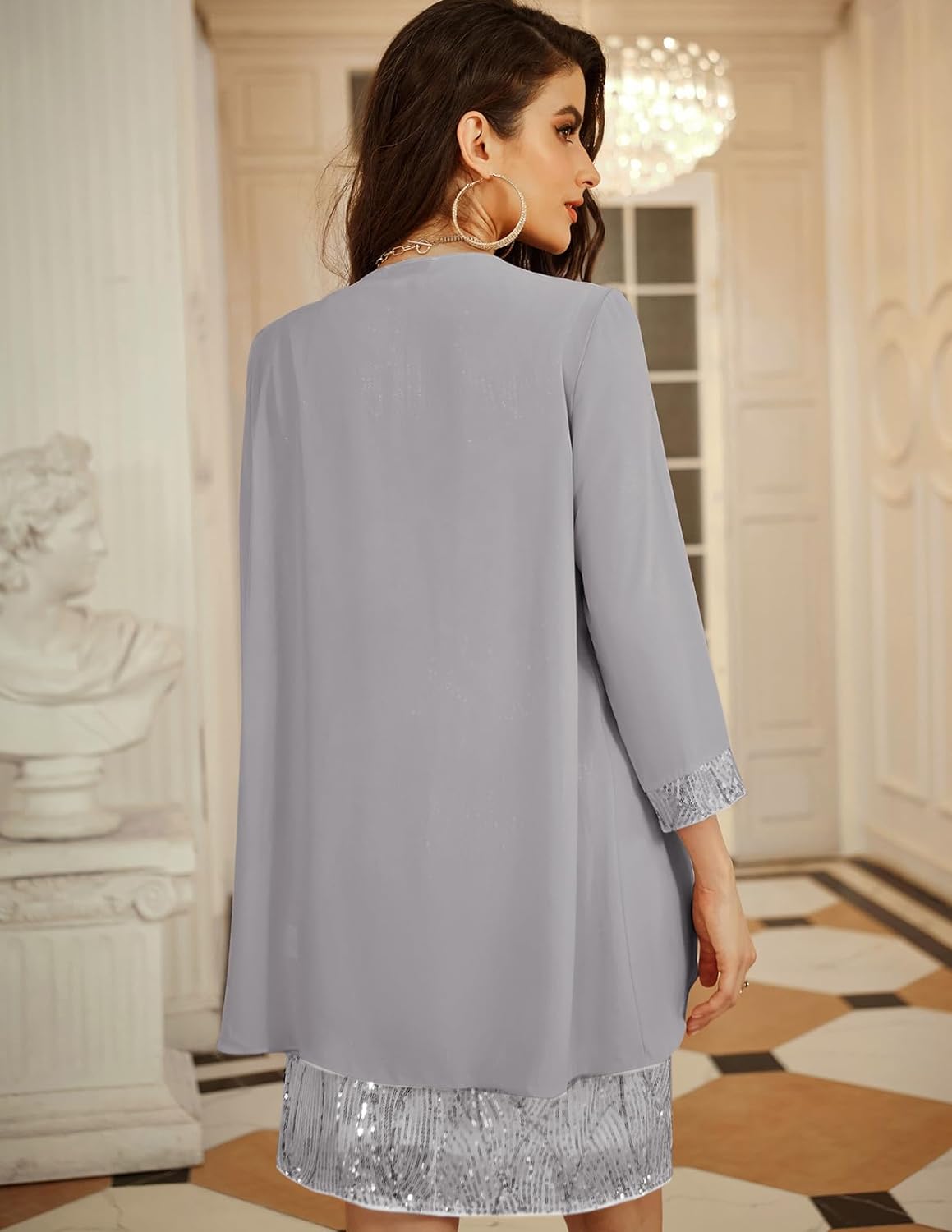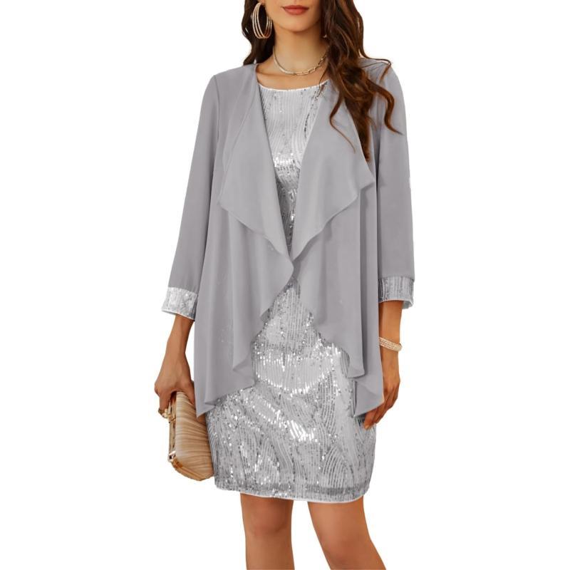 GRACE KARIN Womens Mother of The Bride Sequins Glitter Mini Jacket DressSilver