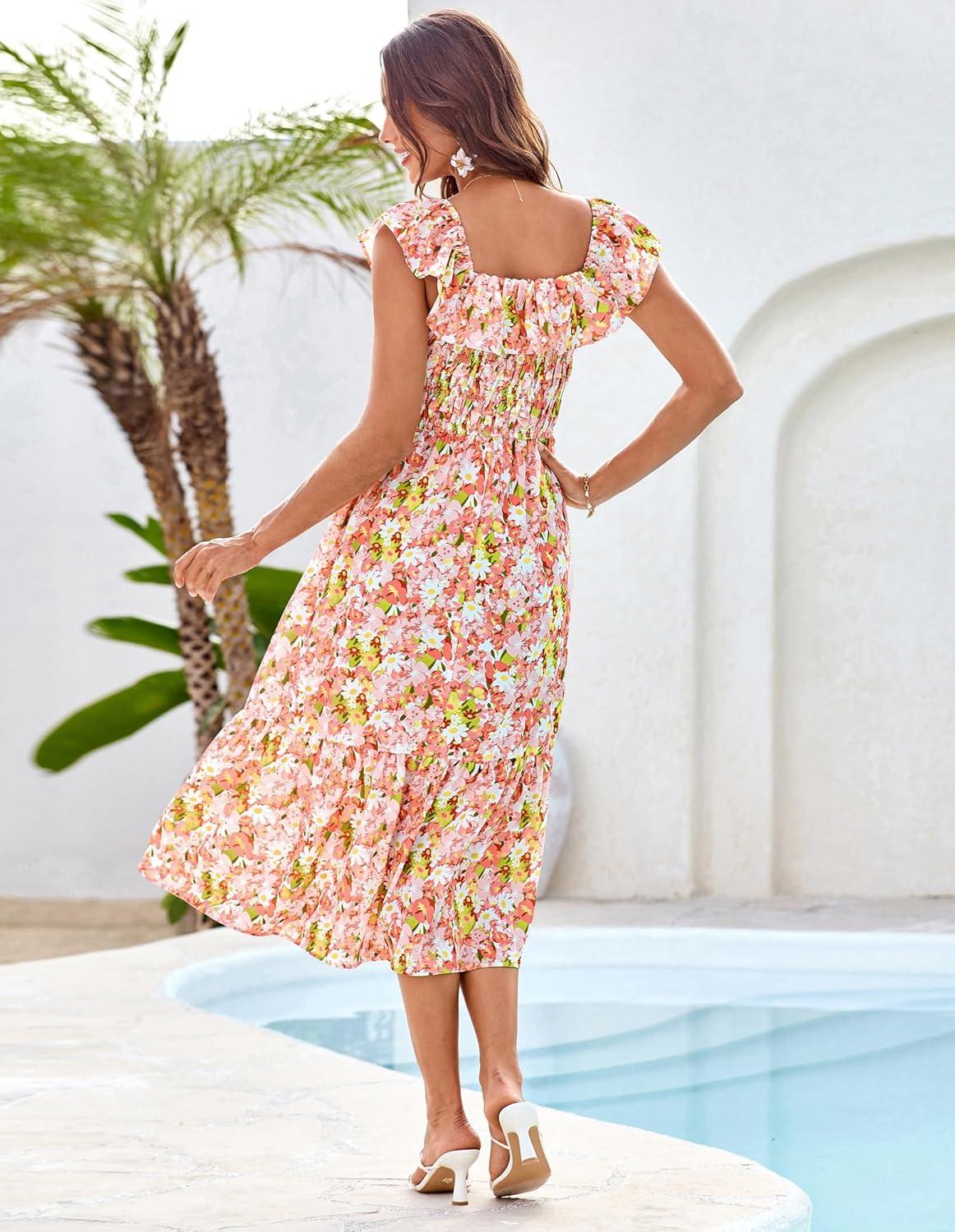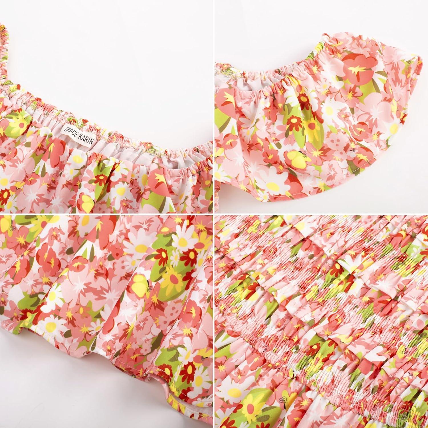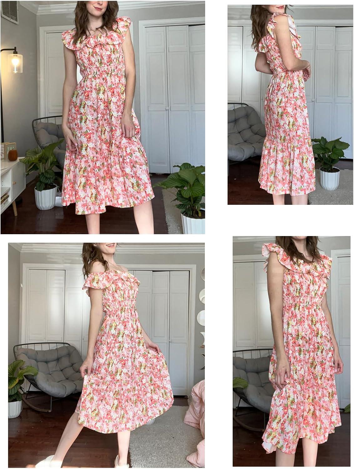 Get the GRACE KARIN Women’s Off Shoulder Floral Summer Ruffle Midi Sleeveless Boho Smocked Flowy Aline Dresses(Orange White) you want at a price you can afford with our markdown sale.