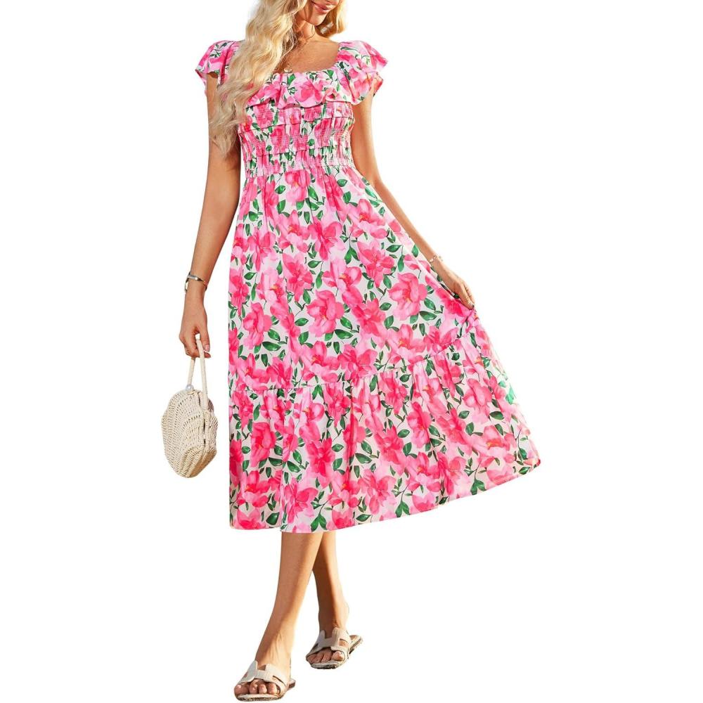 Be the first to review “GRACE KARIN Women’s Off Shoulder Floral Summer Ruffle Midi Sleeveless Boho Smocked Flowy Aline Dresses(Rose Red)”