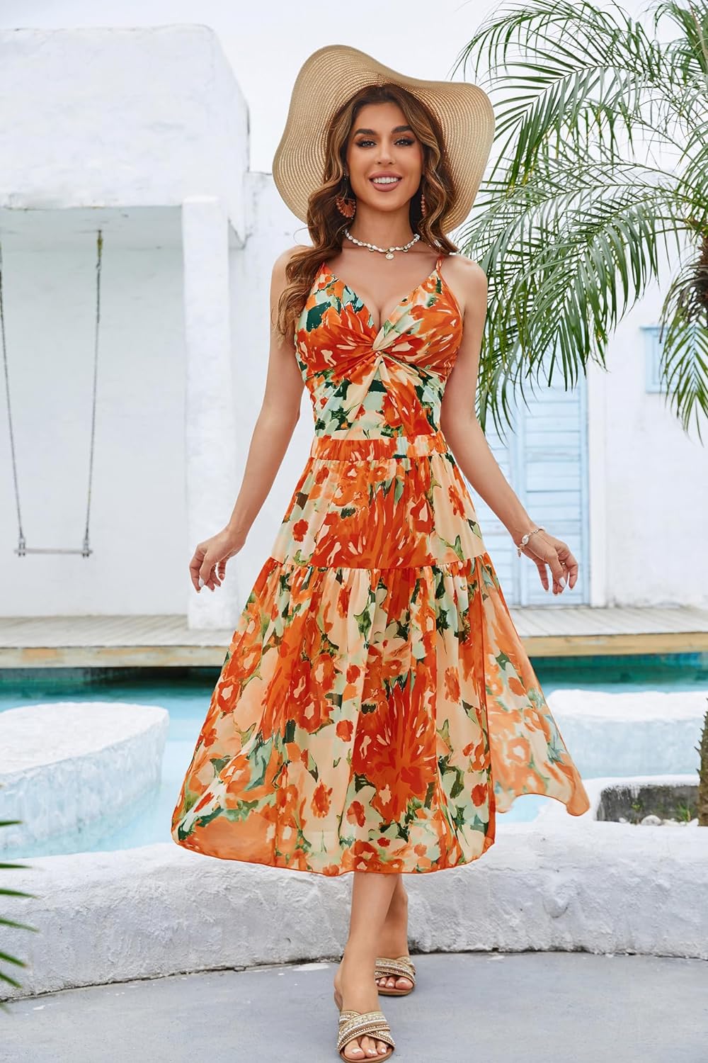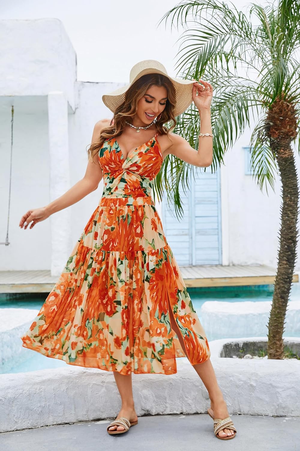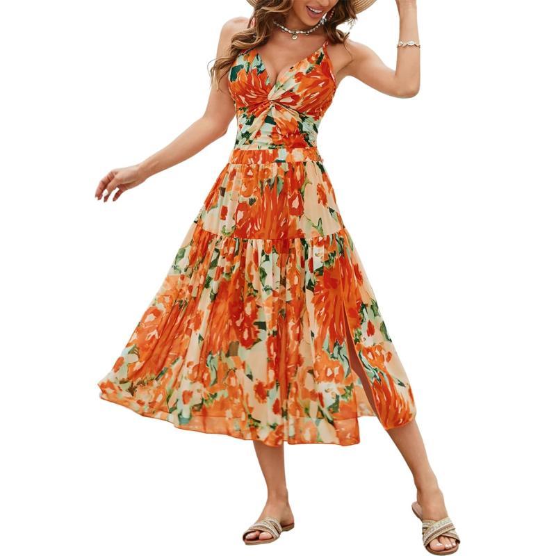 GRACE KARIN Womens One Piece Swimsuits with Cover Up Skirt Tummy Control V Neck Bathing SuitsOrange Floral