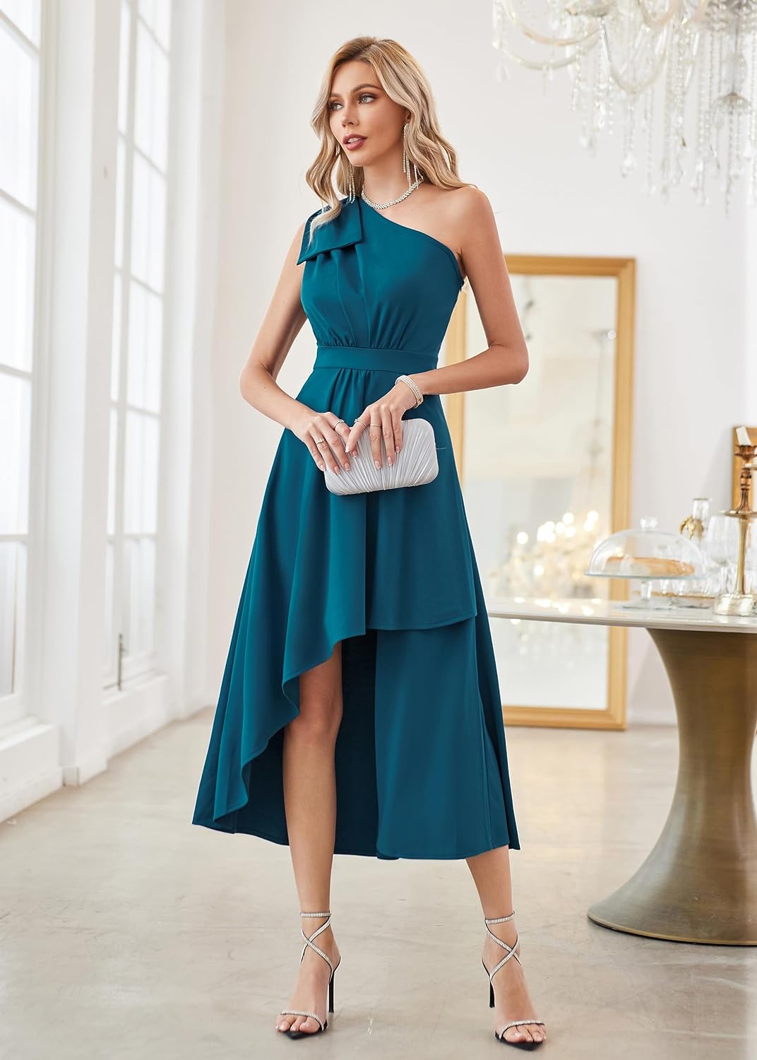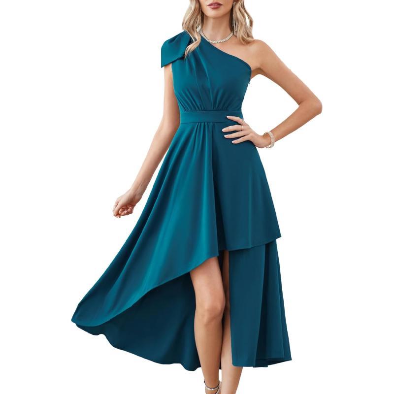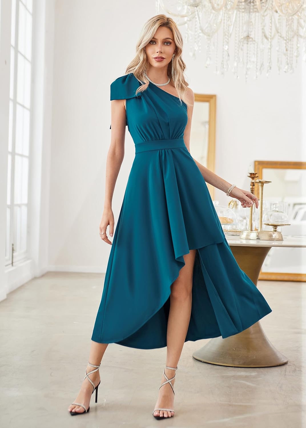 Highlights: Women's Formal Dresses feature trendy one shoulder with a bow design, Asymmetrical high-low hem split design enhancing the layered and dynamic appearance, adding a hint of sexy, and highlighting the elegant and dignified atmosphere of femininity.