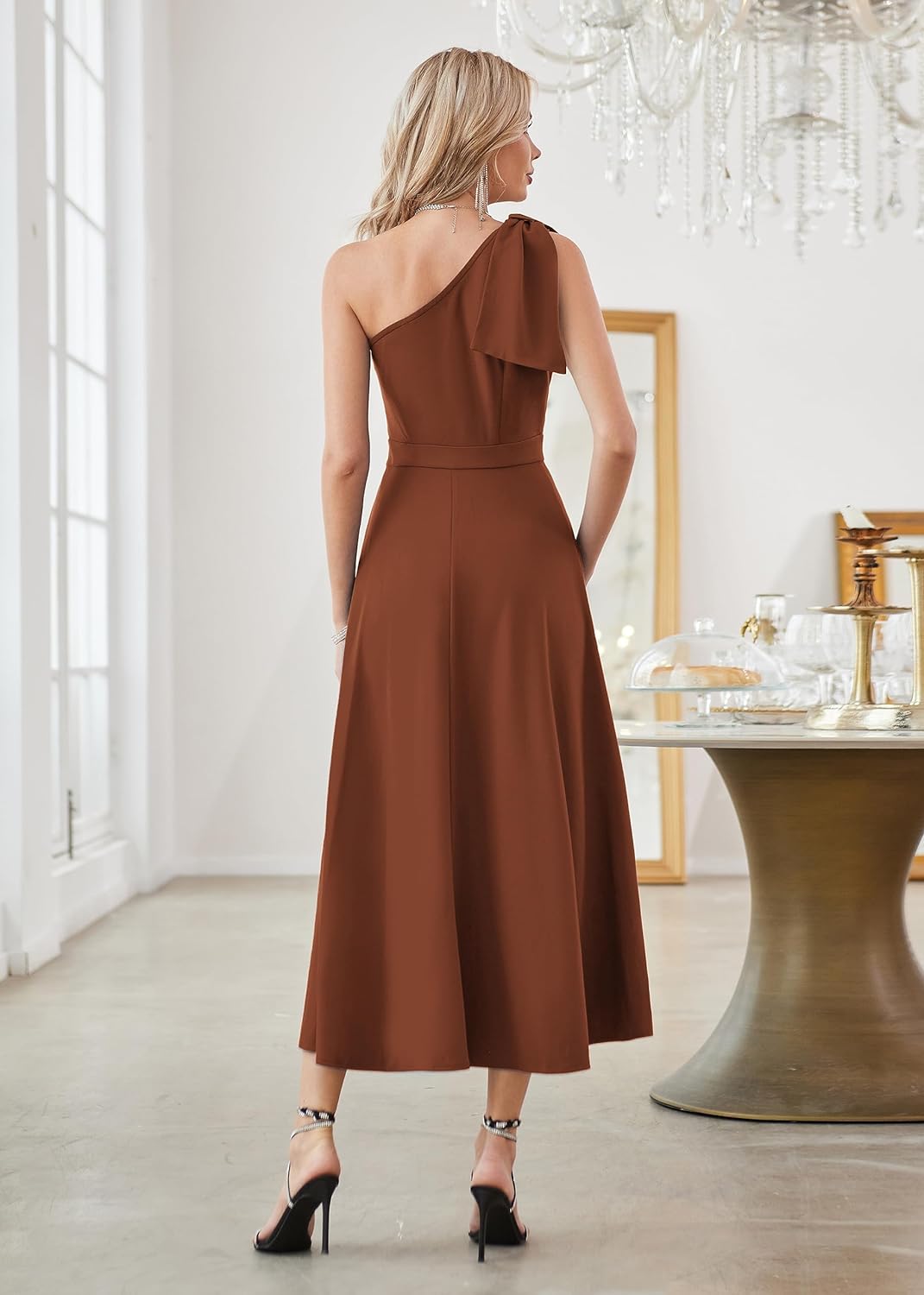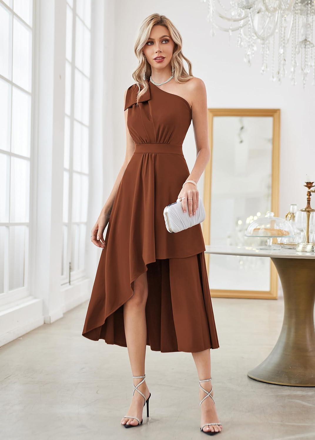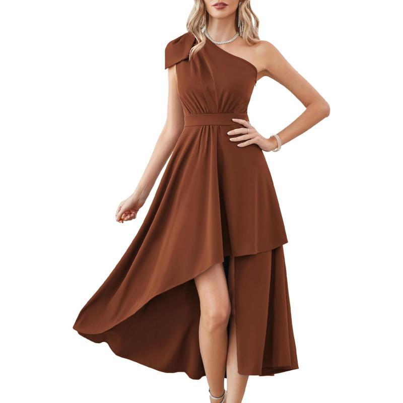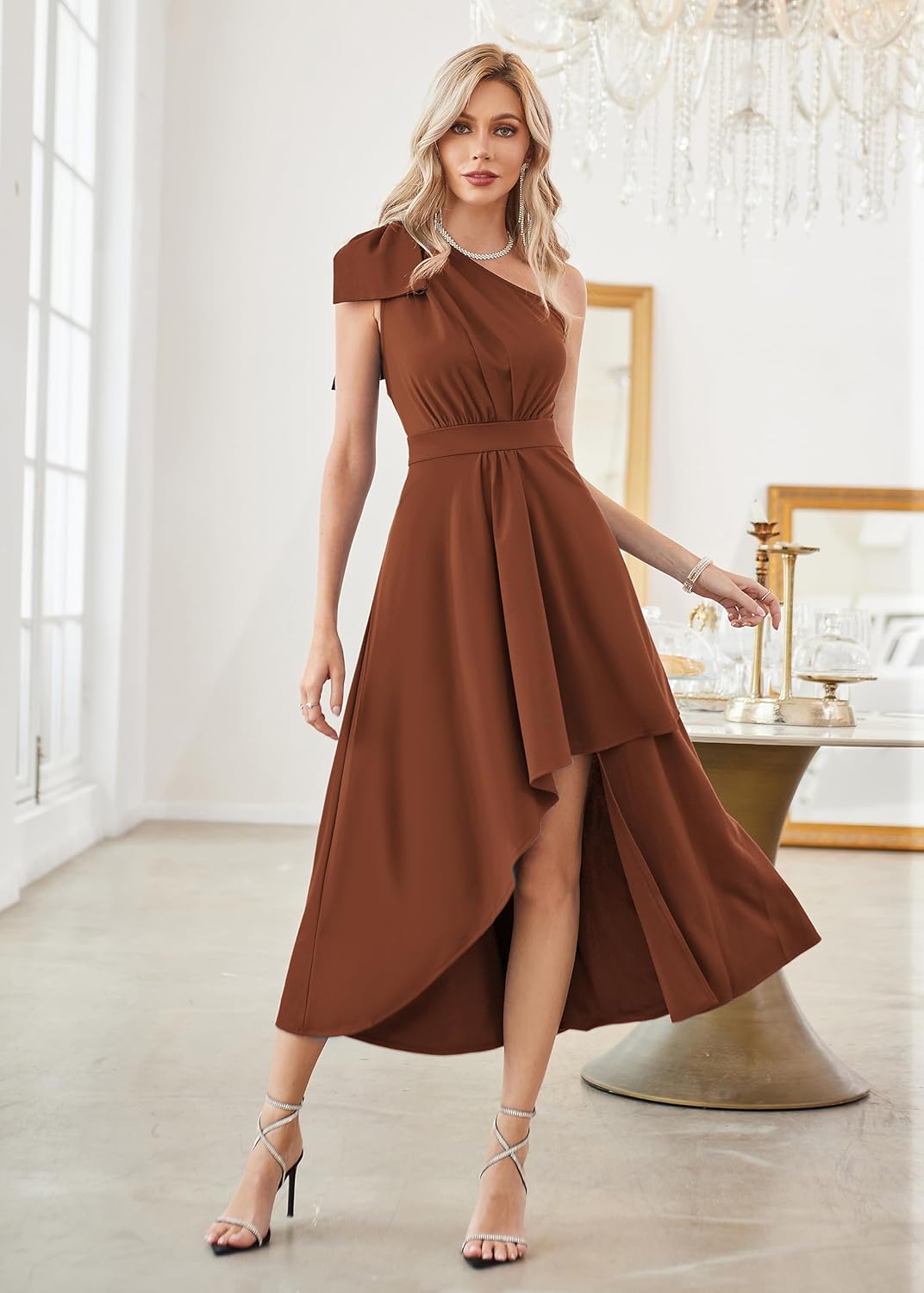 Unique Design: Elegant One Shoulder Dresses/ Maxi Dresses/ Cute Bow Dresses/ Sleeveless Dresses/ Long Flowy Dresses For Women/ A Line Summer Dresses for Women 2023/ High Waisted Dresses for Women/ High Low Dress for Women/ Solid Color/ Asymmetrical Hem/ Cocktail Dresses for Wedding Guest