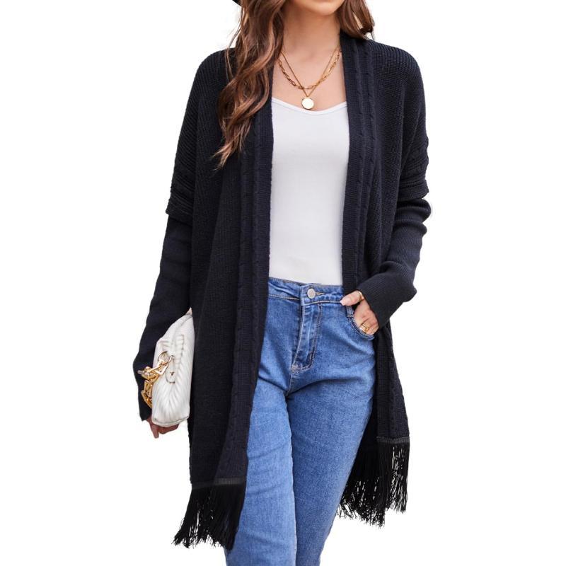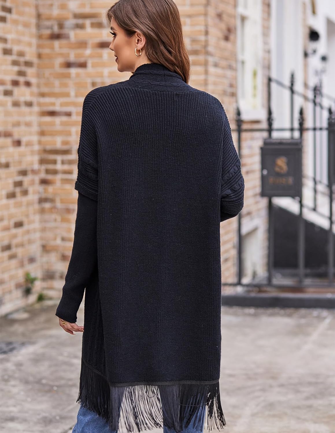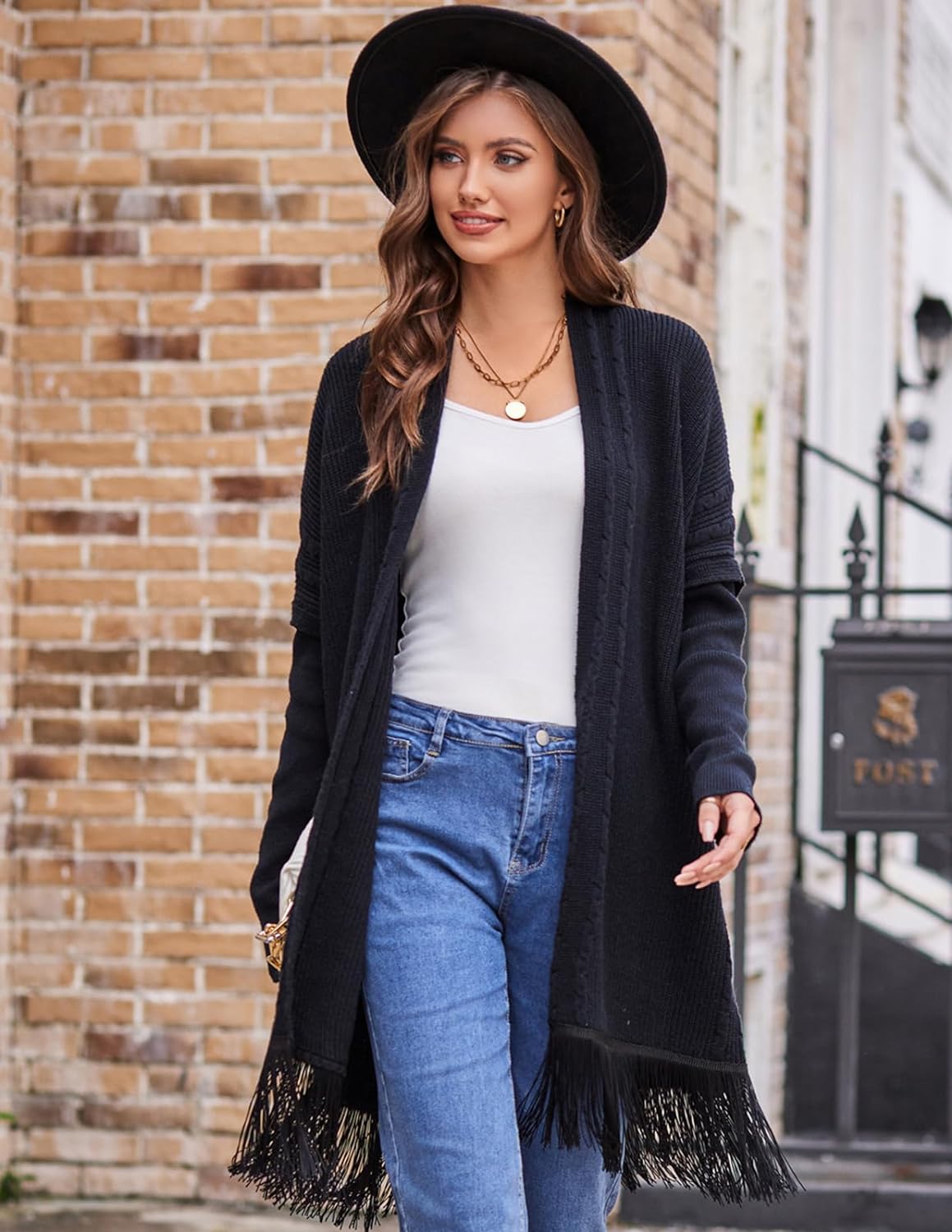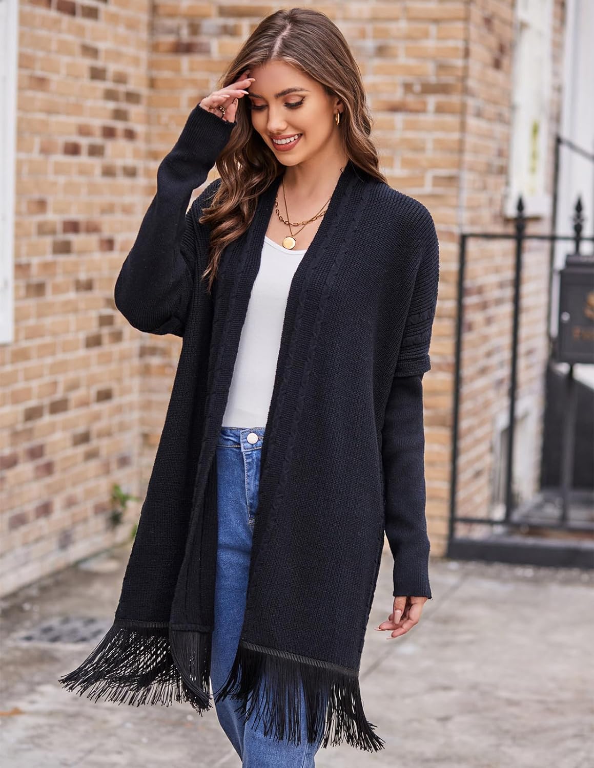 GRACE KARIN Women's Open Front Cardigan Sweater Long Sweater Cardigan with Tassel(Black)