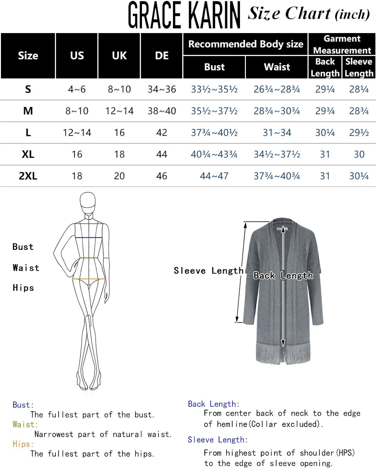 GRACE KARIN Womens Open Front Cardigan Sweater Long Sweater Cardigan with TasselGrey