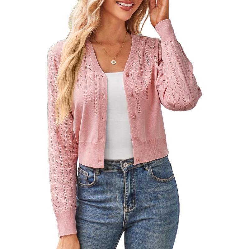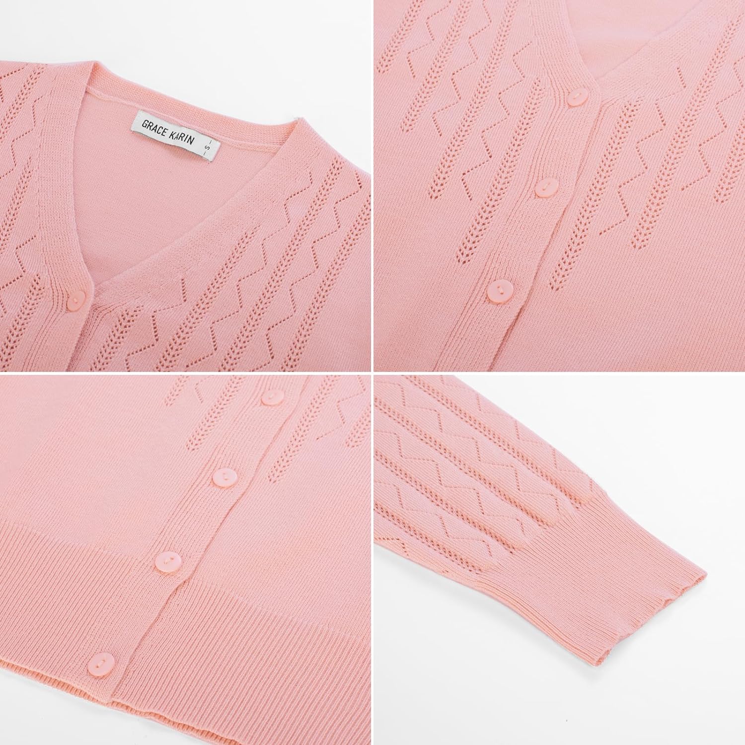 GRACE KARIN Womens Open Front Knit Cropped Bolero Shrug Cardigan Sweater Long Sleeve S4XLPink Hollow Out