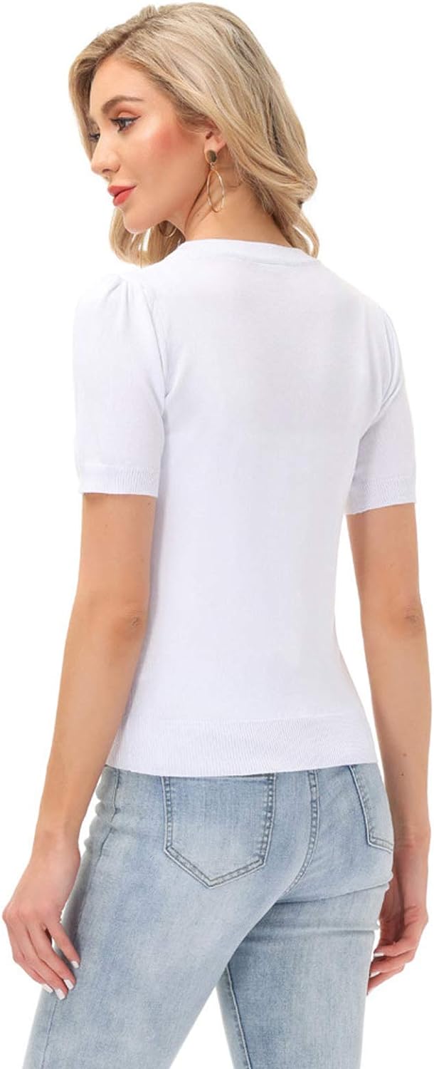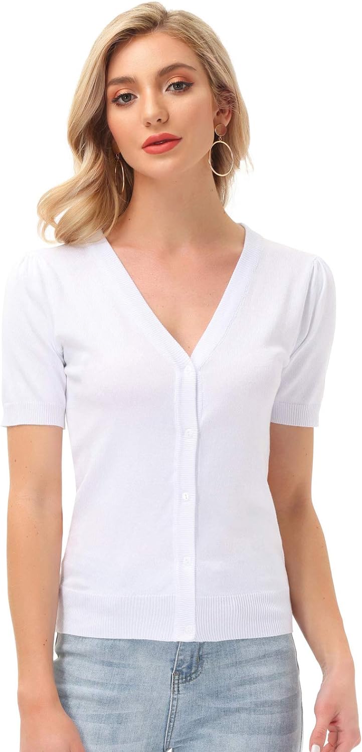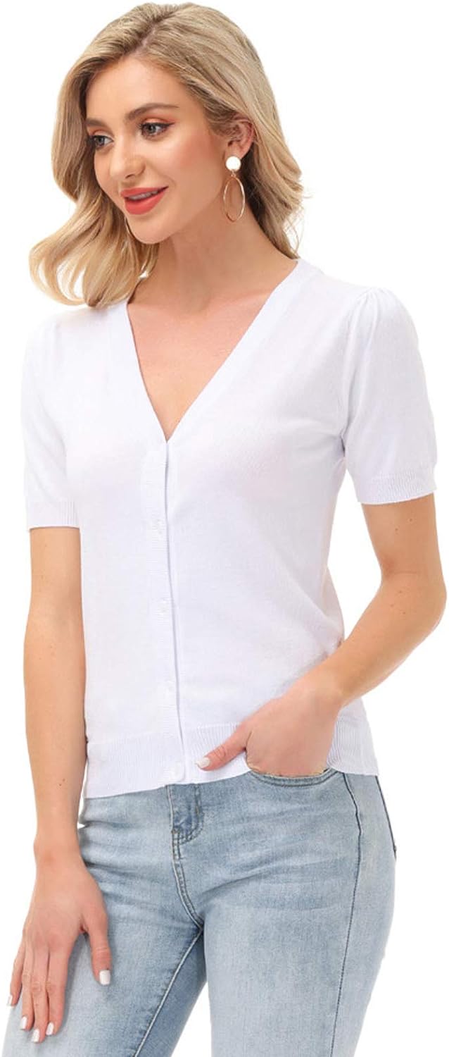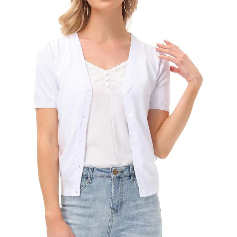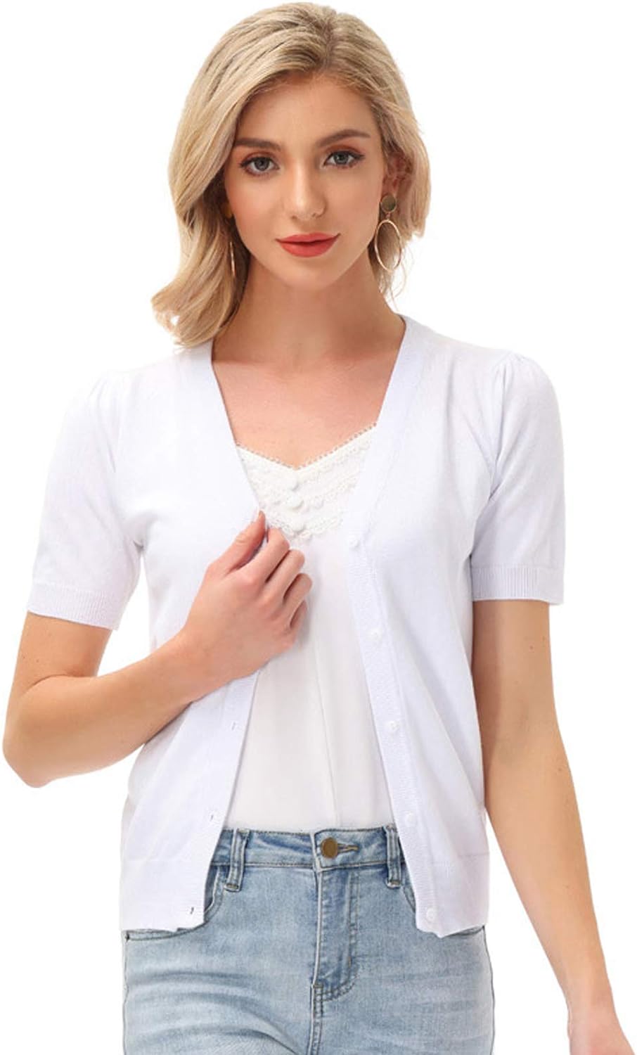 GRACE KARIN Women’s Open Front Knit Cropped Bolero Shrug Cardigan Sweater Long Sleeve (S-4XL)(White (Short Sleeve))
