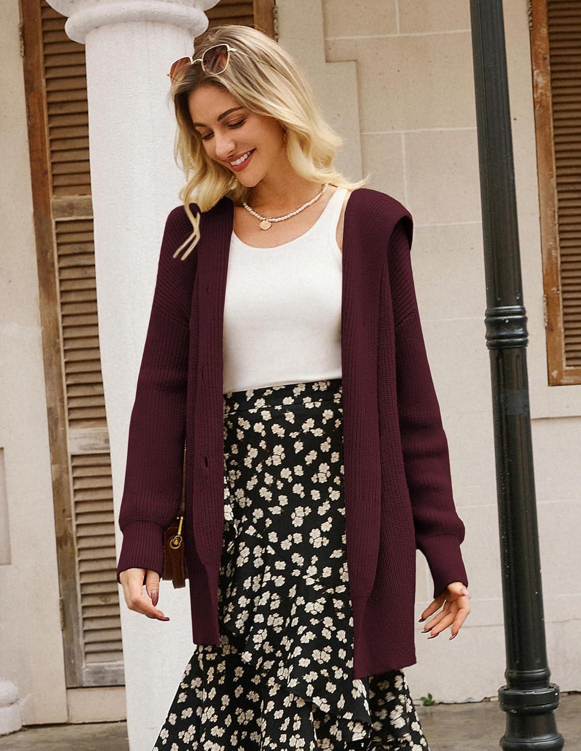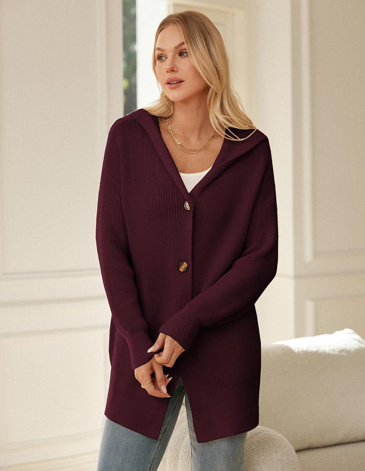 Be the first to review “GRACE KARIN Womens Oversized Hooded Cardigan Sweaters 2025 Trendy Fall Outfits Button Up Knit Sweater Coats with Pockets(Wine Red)”