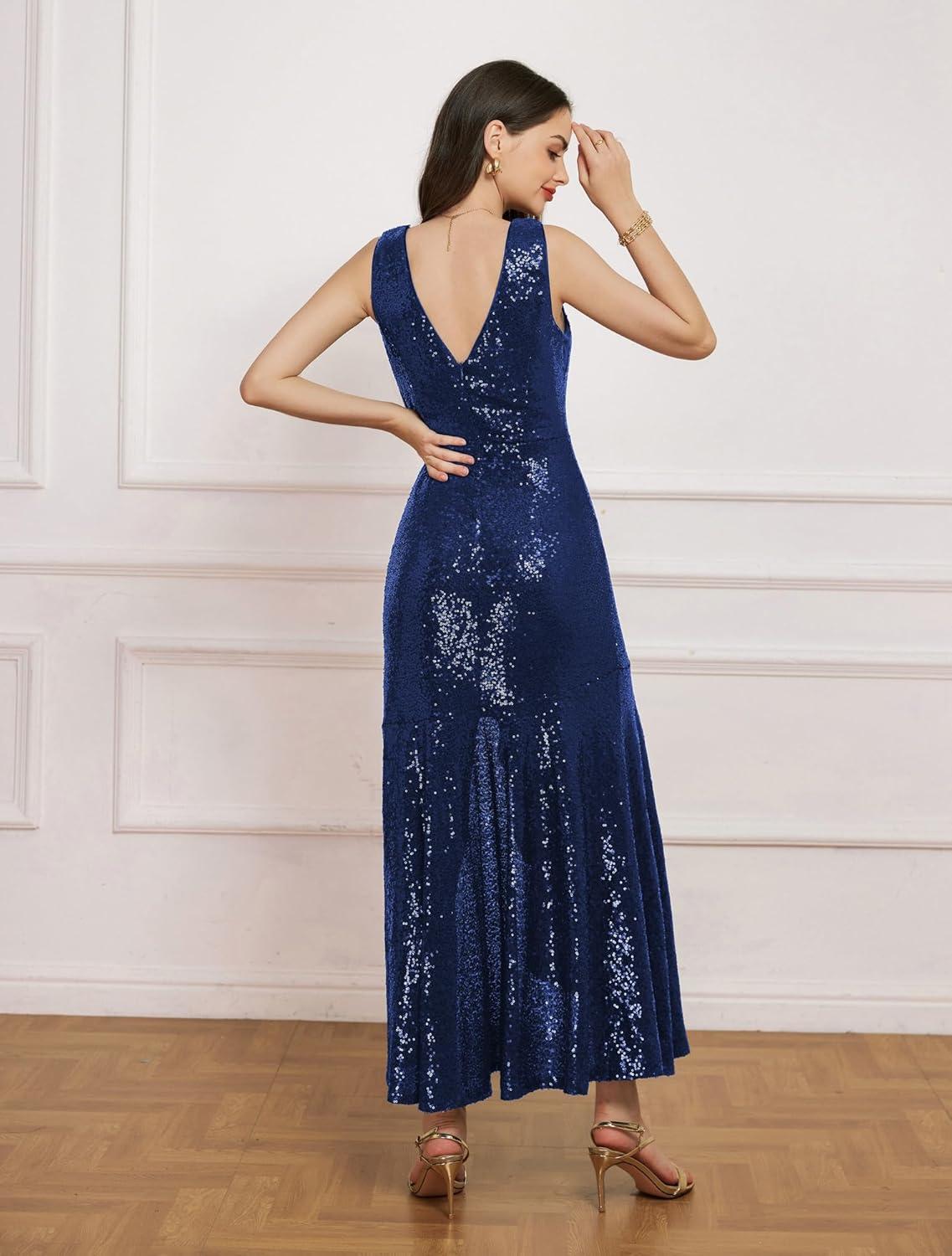 Be the first to review “GRACE KARIN Womens Sequin Dress Sleeveless Cockatil Dress High Low Hem Wedding Party Ruffle Maxi Dress Evening Gown(Navy)” Cancel reply