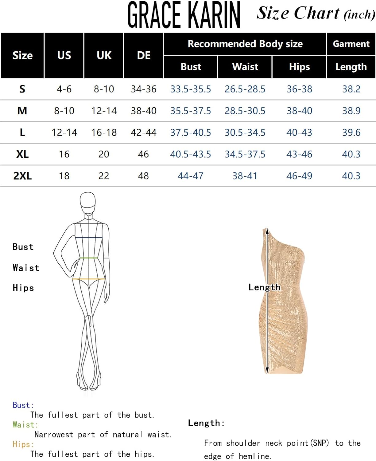 GRACE KARIN Womens Sequin Dress Sparkly Glitter One Shoulder Party Club Dress Wrap Hem Ruched Cocktail DressesSilver