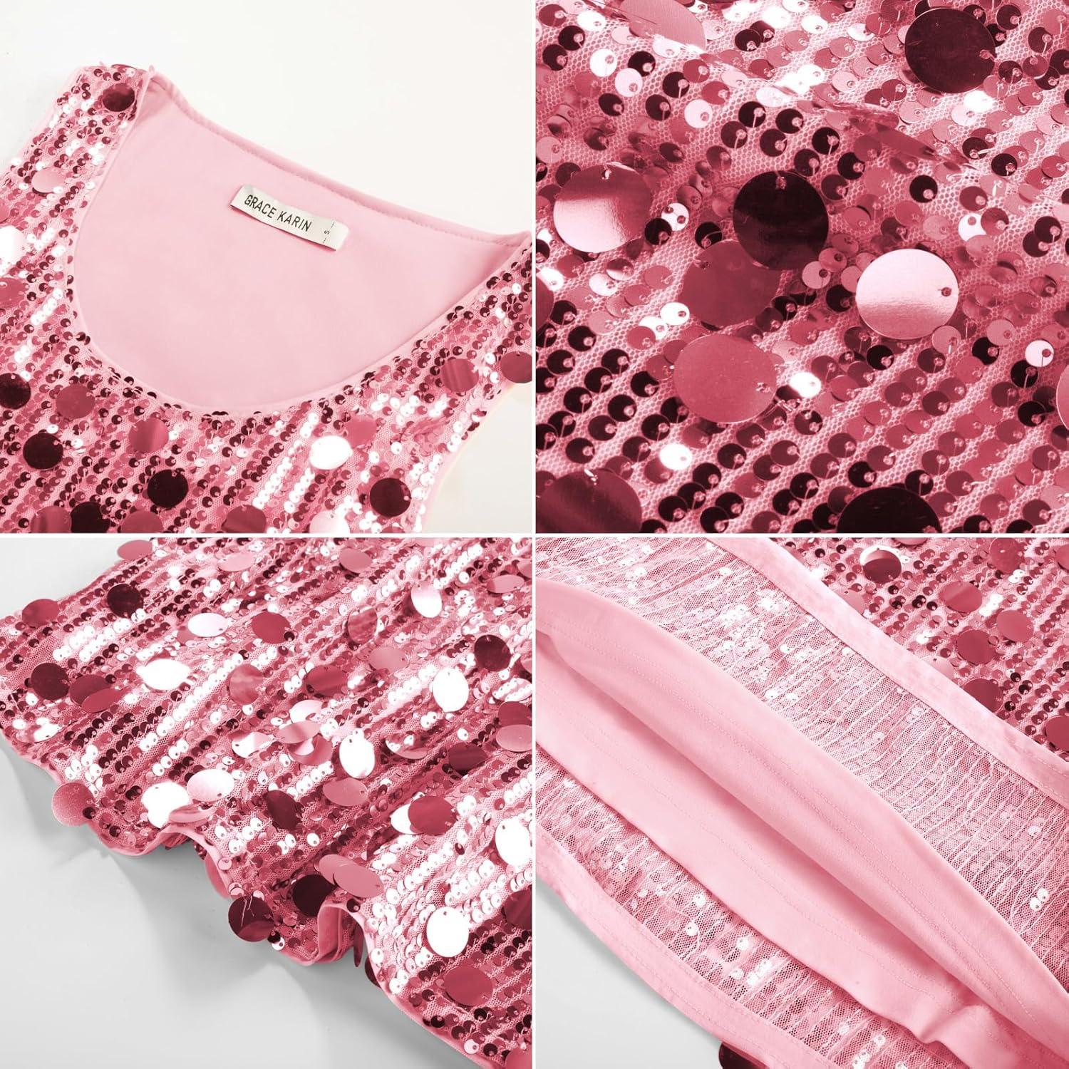 GRACE KARIN Women’s Sequin Top Sleeveless Sparkly Dressy Tank Tops Vest Glitter Cocktail Party Shiny Club Night(Pink)