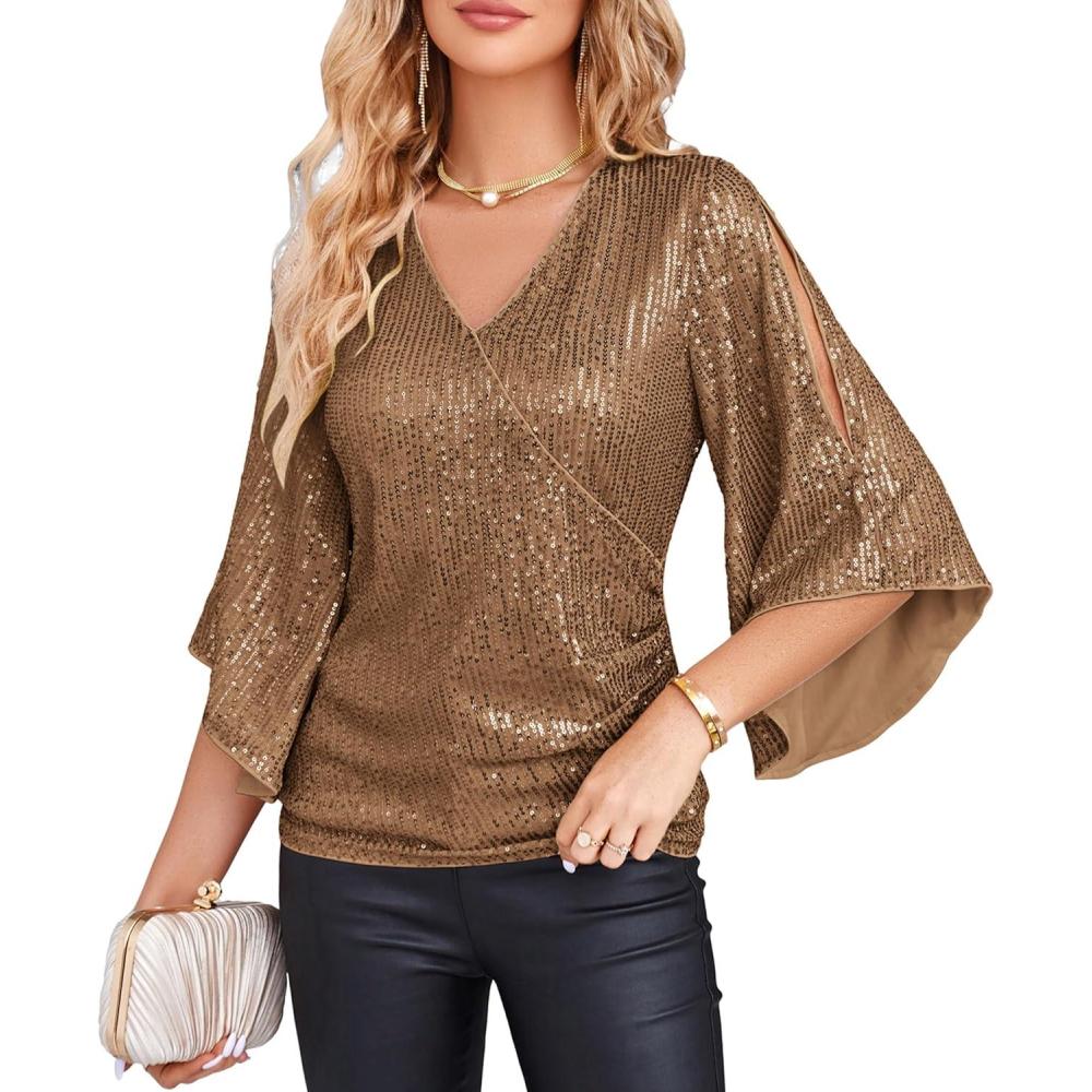 Get up to 50% off on GRACE KARIN Womens Sequin Tops 3/4 Sleeve Glitter Sparkly Shimmer Party Dressy Blouse V-Neck Disco Club Concert Shirts(Brown) styles during our spring sale event.