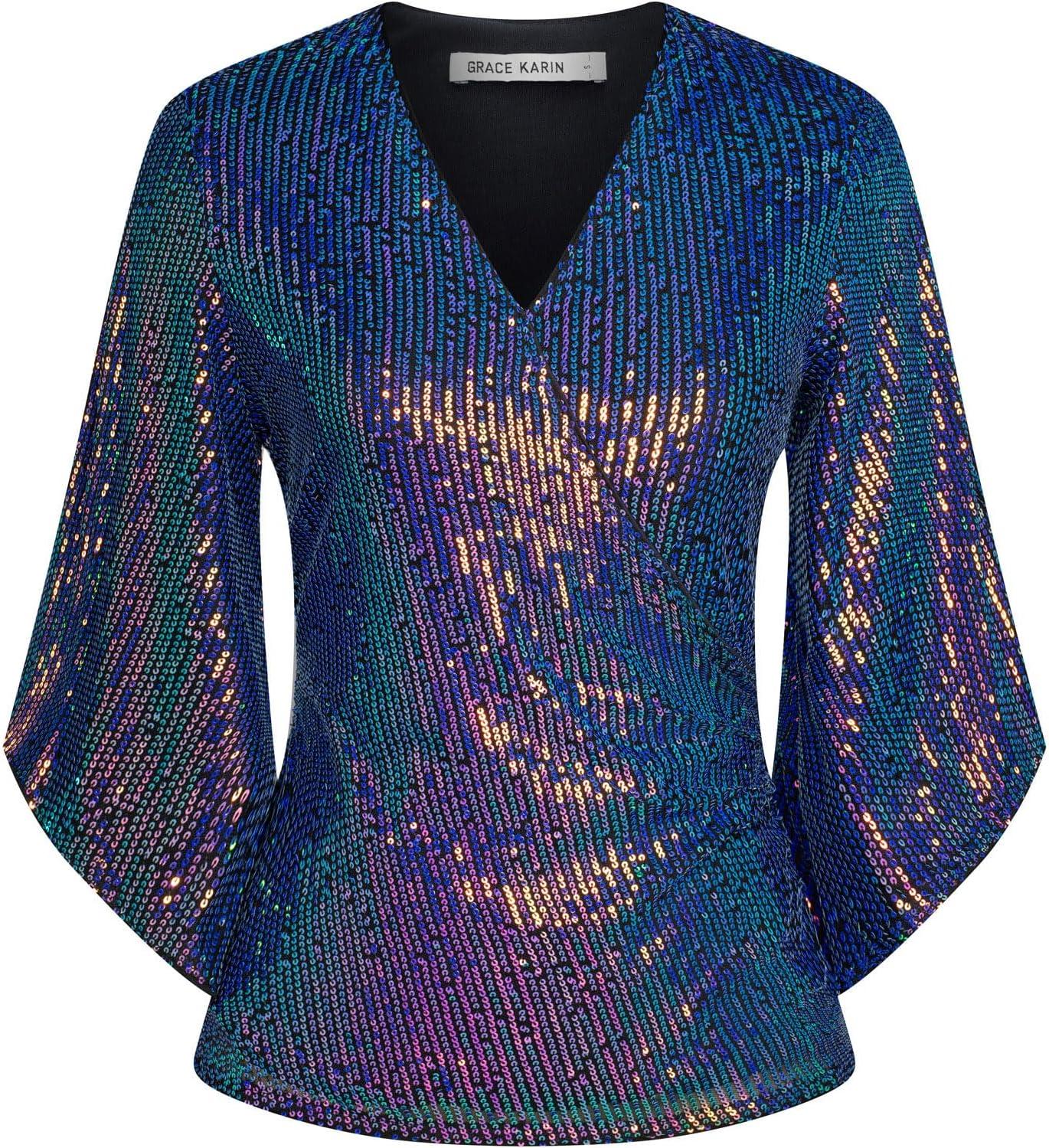 Our clearance section features the best deals on GRACE KARIN Womens Sequin Tops 3/4 Sleeve Glitter Sparkly Shimmer Party Dressy Blouse V-Neck Disco Club Concert Shirts(Fantasy Purple) and accessories. Check it out now!