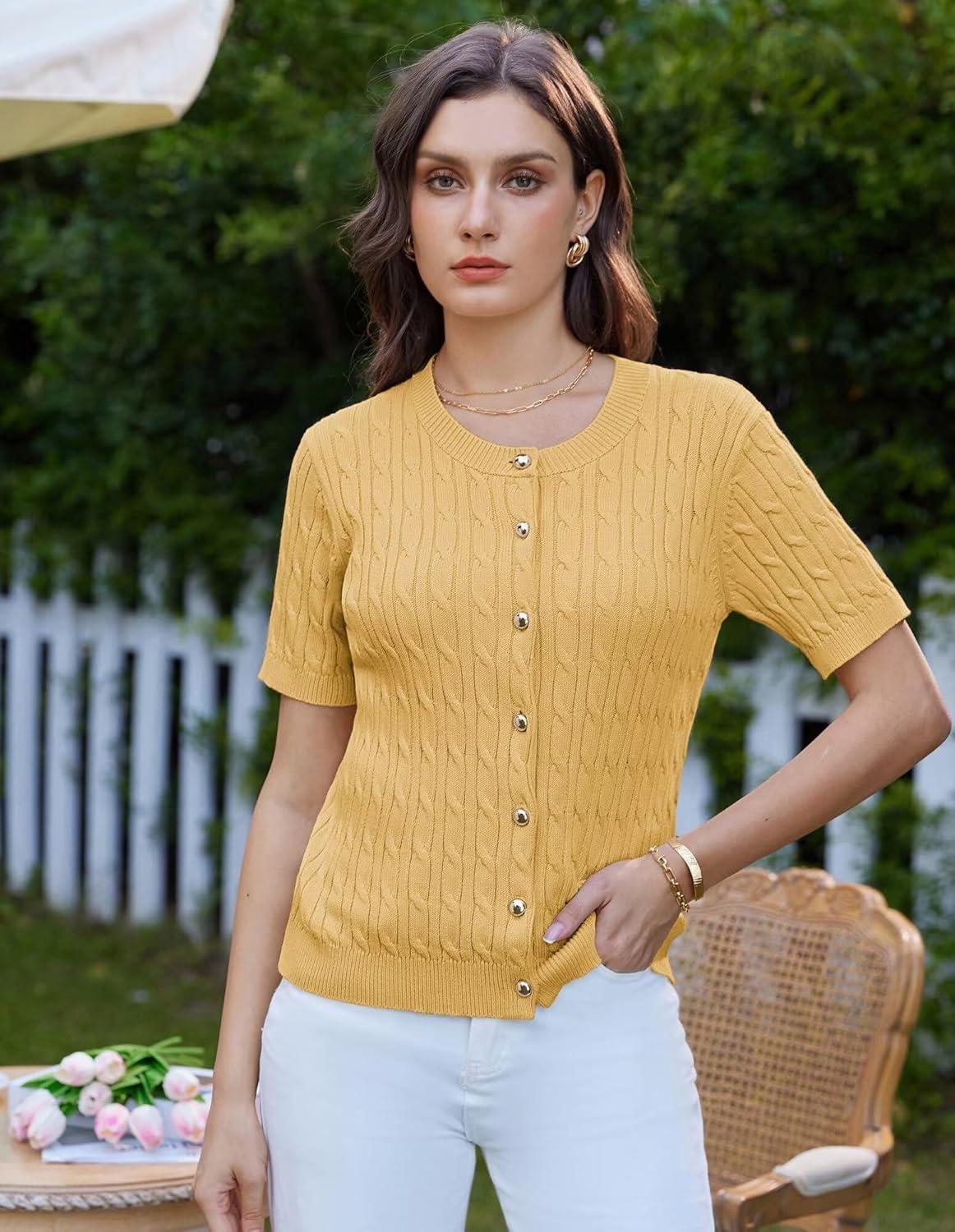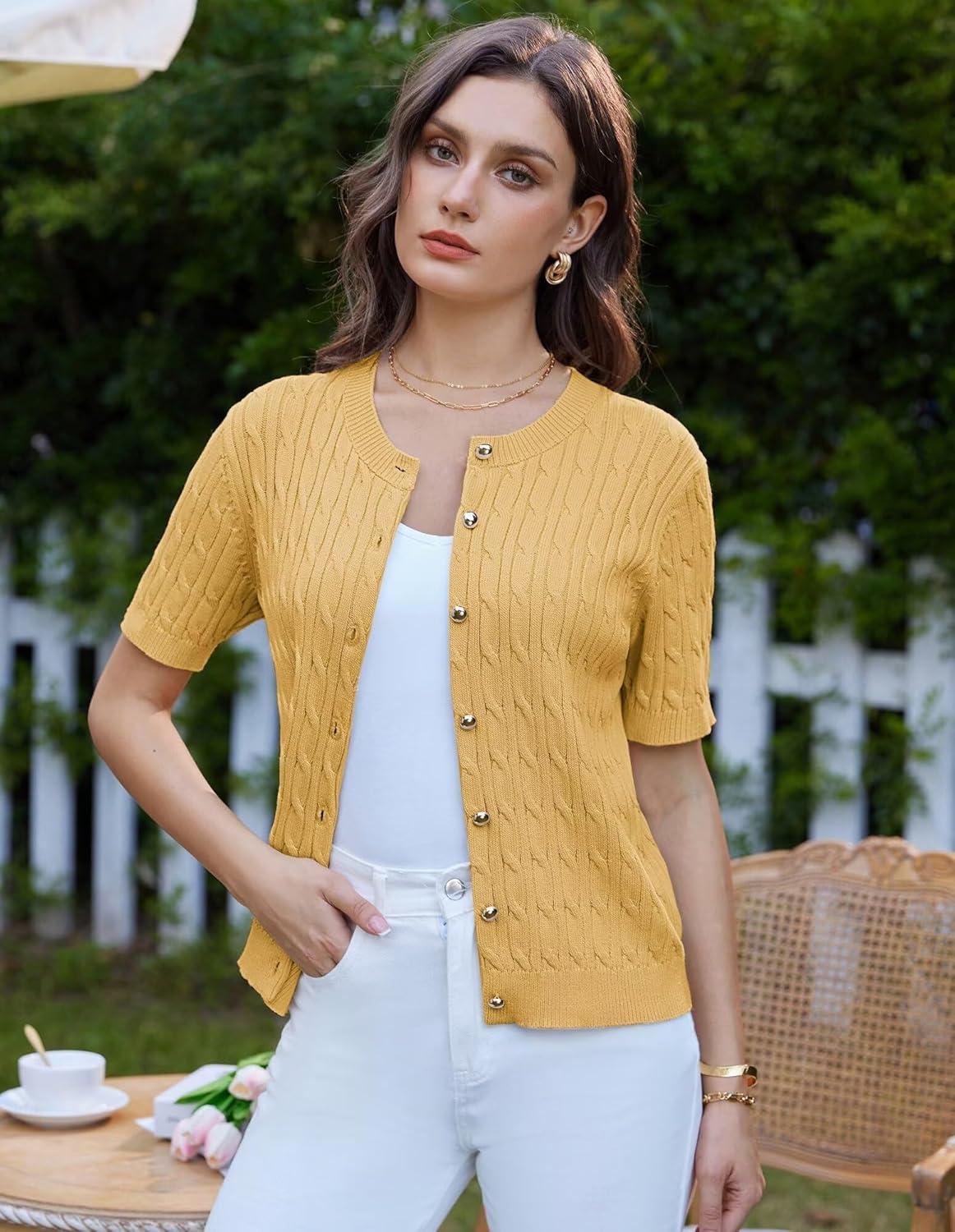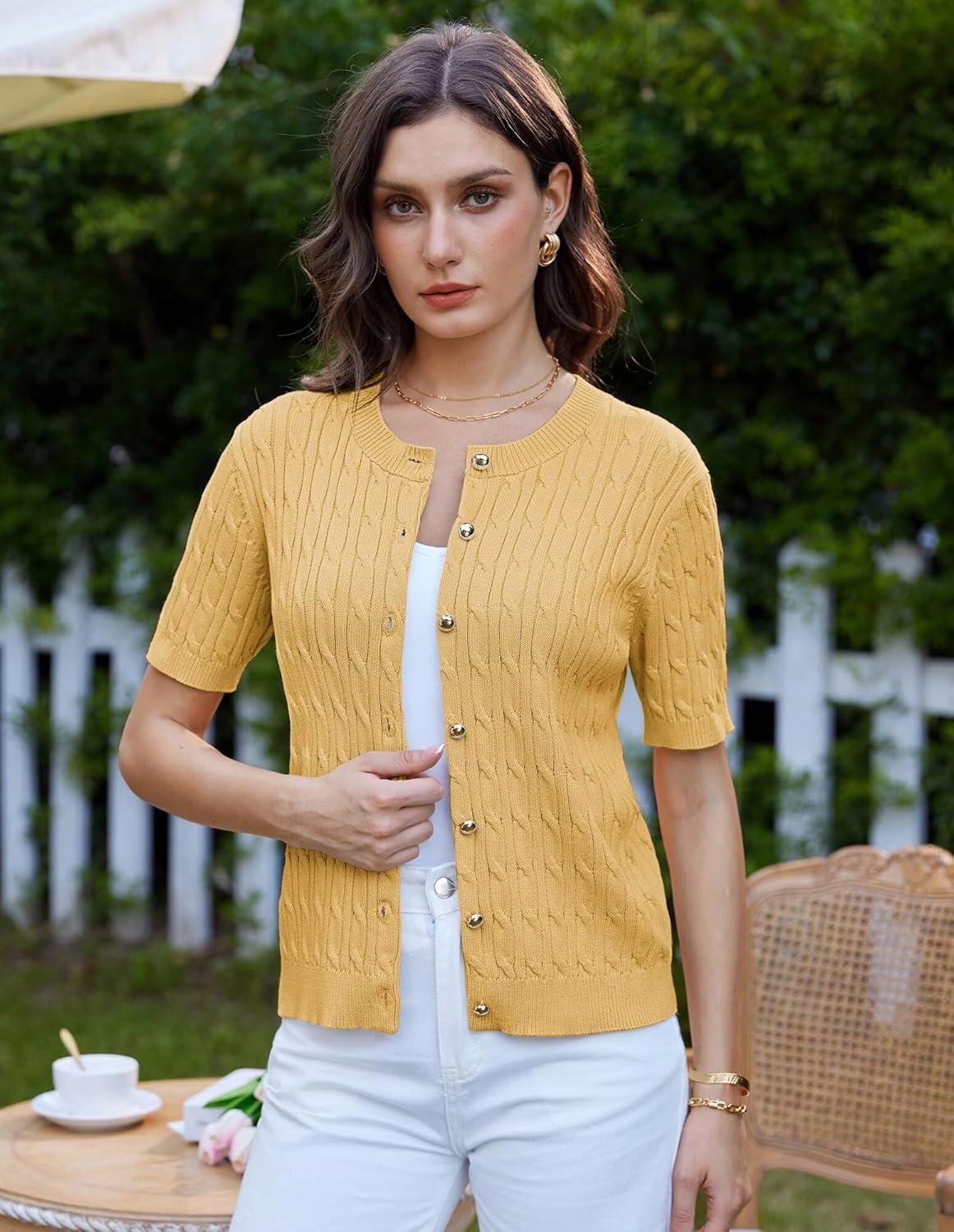 GRACE KARIN Women's Short Sleeve Button Up Summer Cardigan Sweater Y2K Cardigan Jacket (Runs Big, Suggest Size Down)(Yellow)