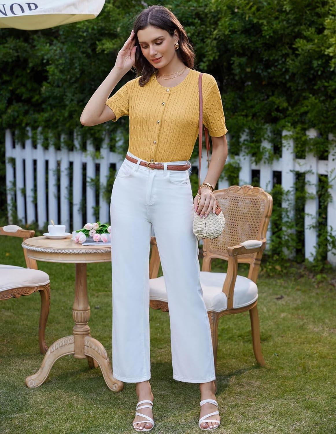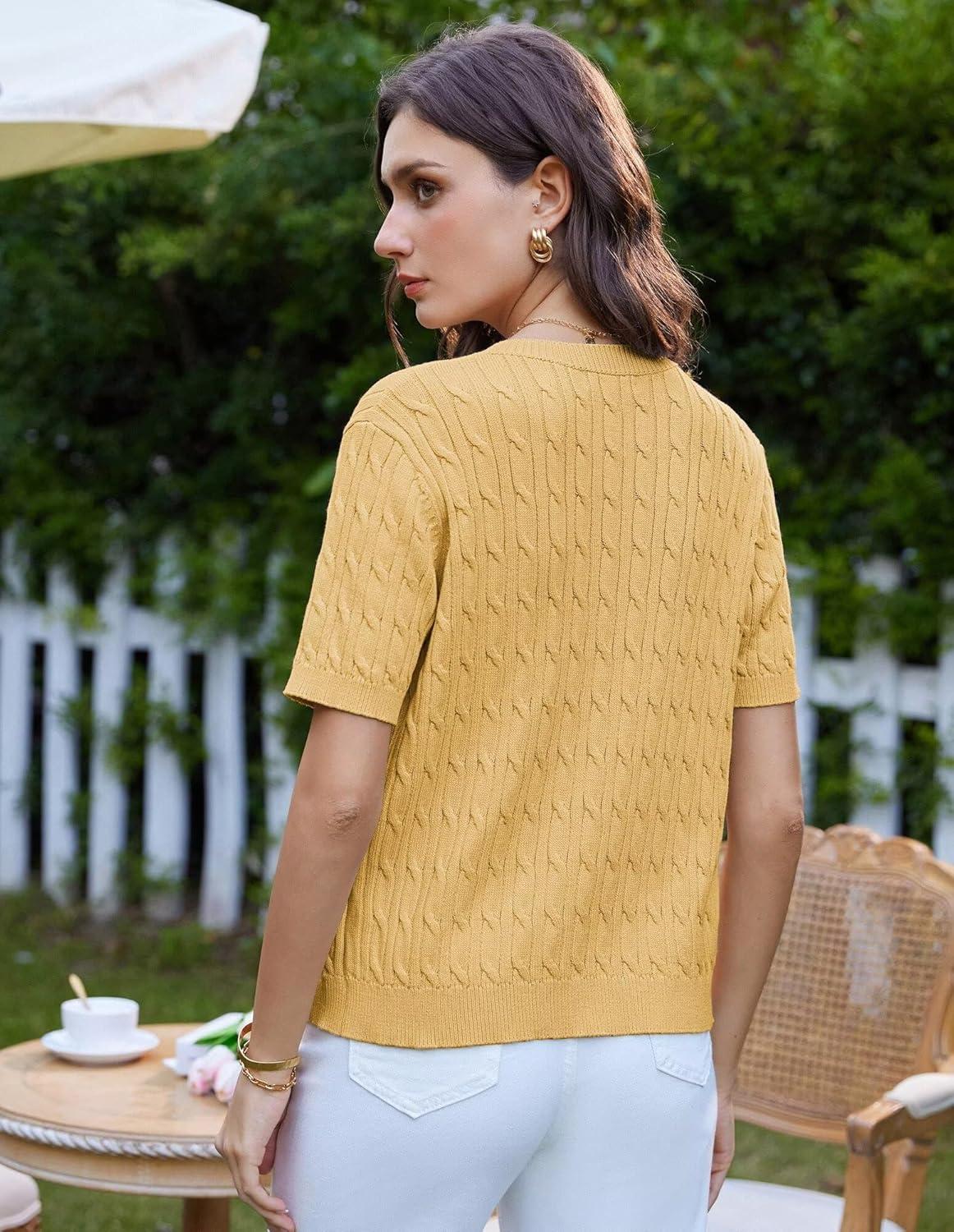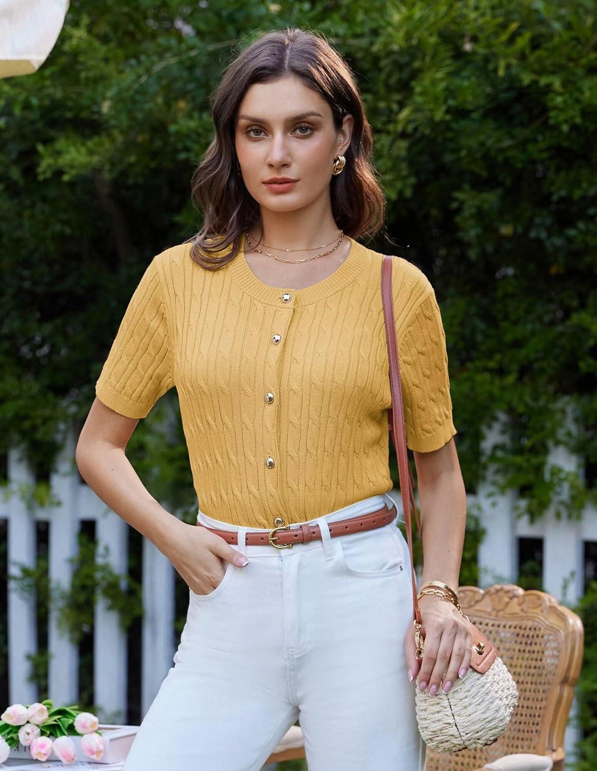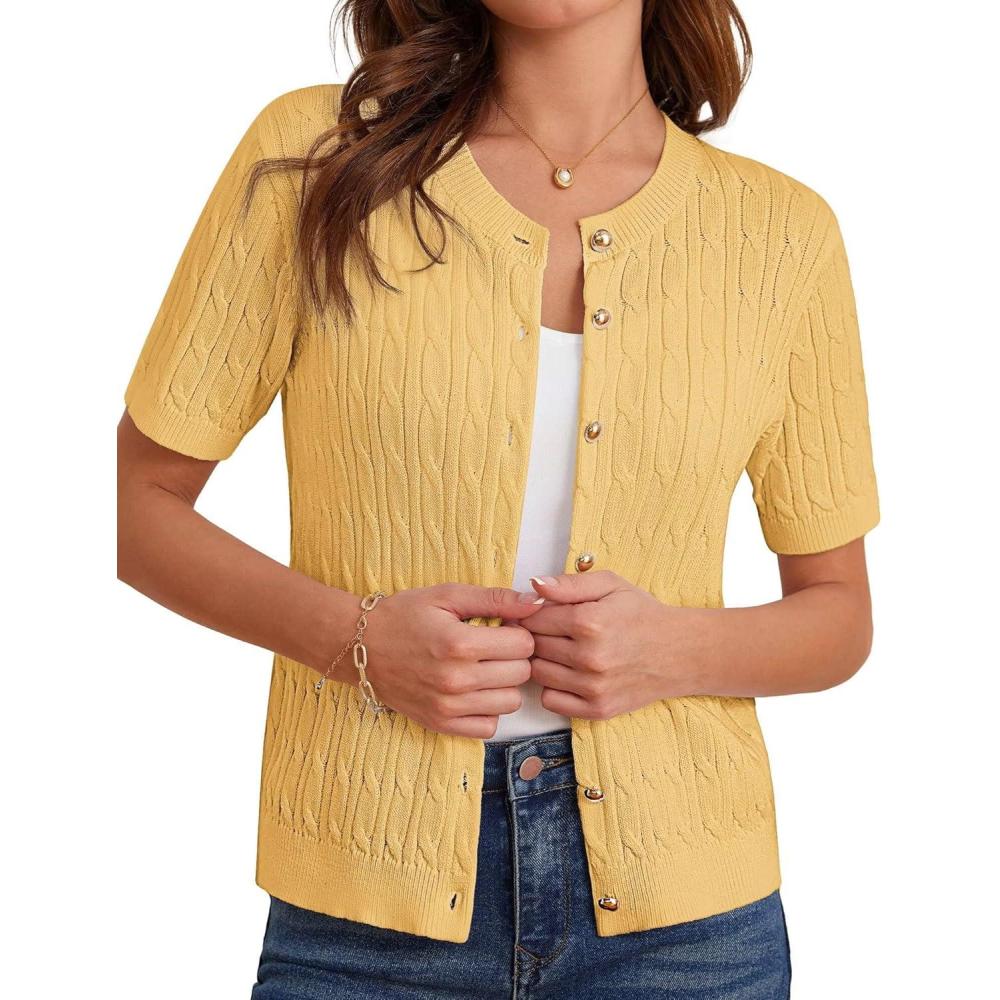 GRACE KARIN Women's Short Sleeve Button Up Summer Cardigan Sweater Y2K Cardigan Jacket (Runs Big, Suggest Size Down)(Yellow)