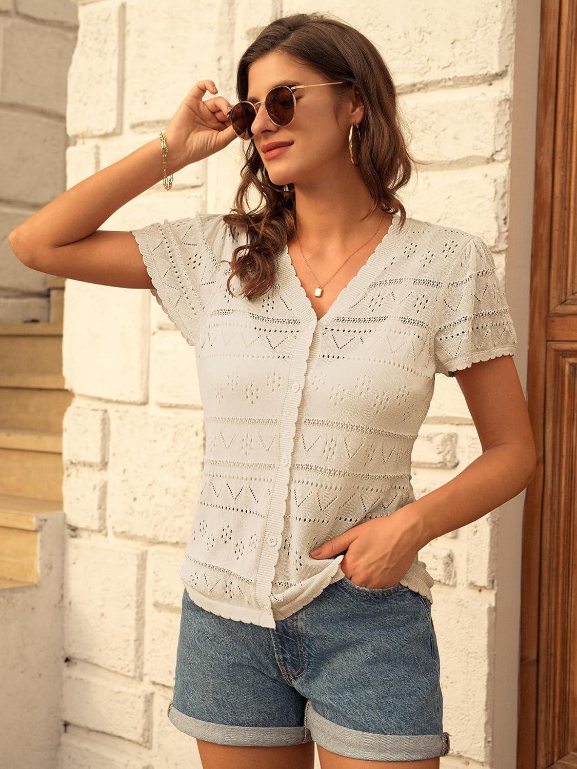 GRACE KARIN Womens Short Sleeve Cardigan 2025 Summer Crochet Cardigans for Women Lightweight Shrugs Sweaters Tops(Black)